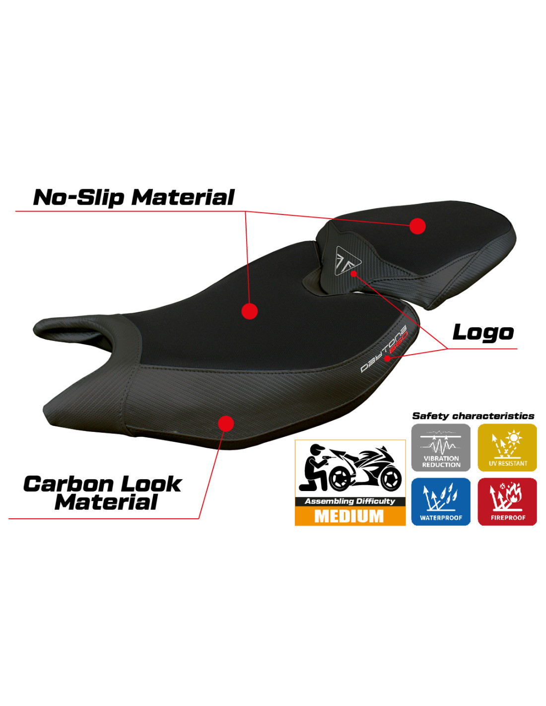 Verleihe deinem Triumph Daytona 660 einen exklusiven Look mit unserem Sattelbezug.