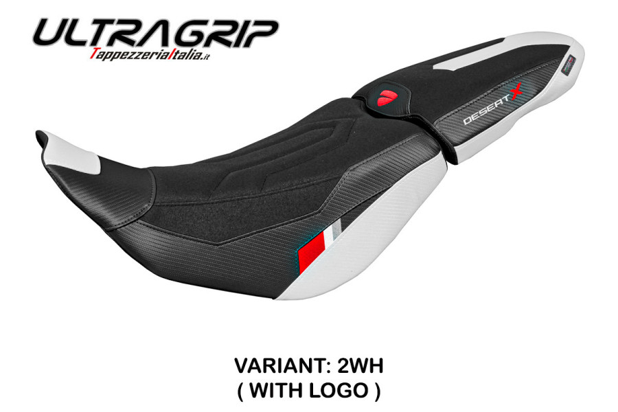 Bringen Sie Ihre Ducati Desert-X auf ein neues Niveau von Kontrolle, Sicherheit und Stil mit dem UltraGrip-Sitzbankbezug von Tappezzeria Italia!