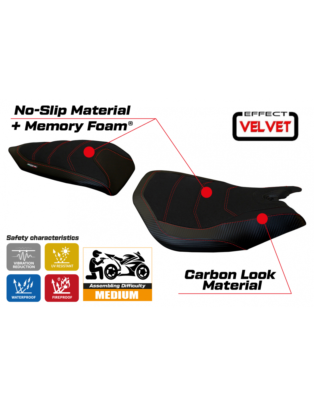 Sitzbezug kompatibel - Ducati Panigale 959 2016 - 2018 - mod Leiden Velvet Comfort System