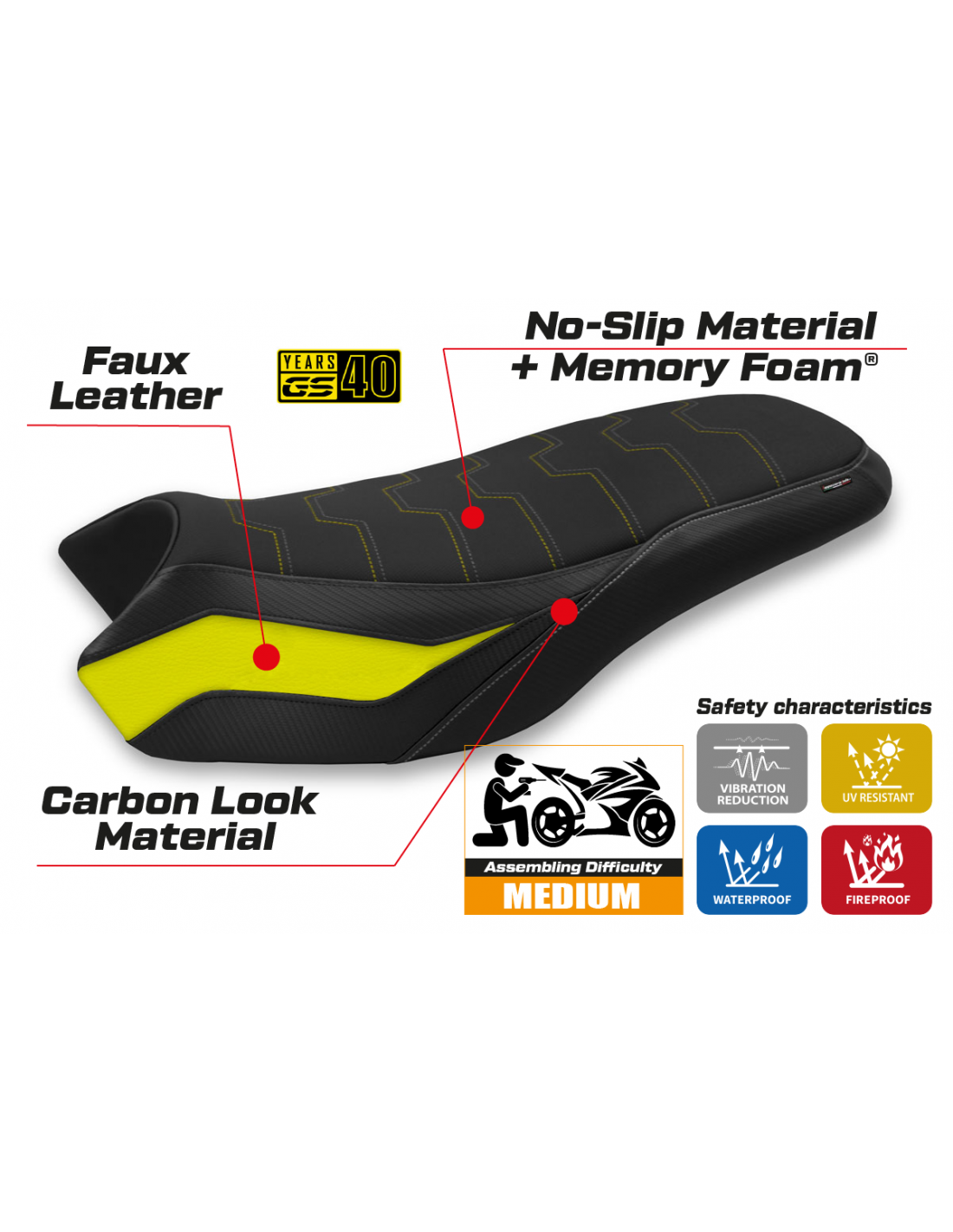 Der Sitzbezug wurde entwickelt, um eine perfekte Kombination aus Stil und Widerstandsfähigkeit zu bieten und eine stabilere und sicherere Fahrt unter allen Bedingungen zu gewährleisten.