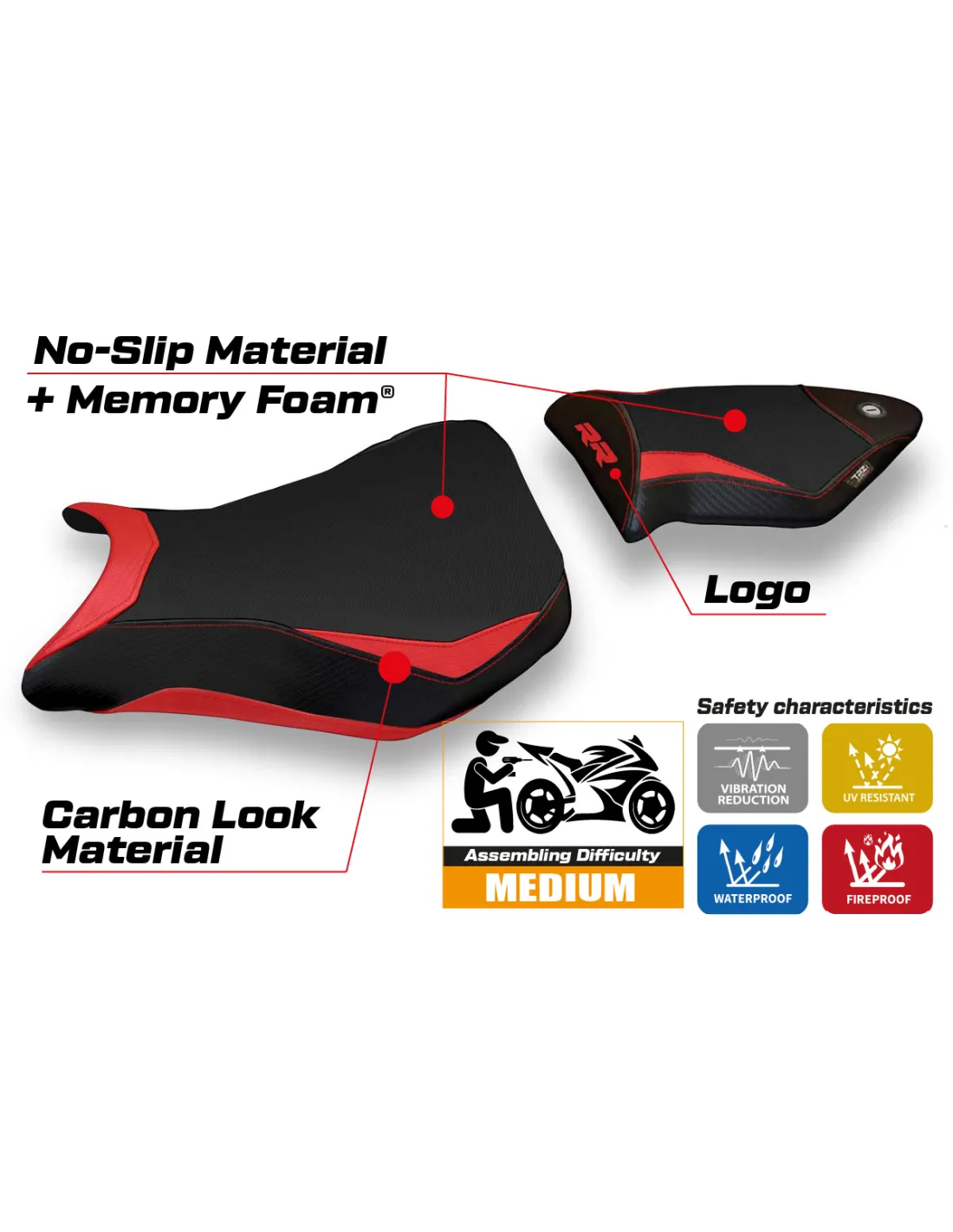 Der Sitzbezug wurde entwickelt, um eine perfekte Kombination aus Stil und Widerstandsfähigkeit zu bieten und eine stabilere und sicherere Fahrt unter allen Bedingungen zu gewährleisten.
