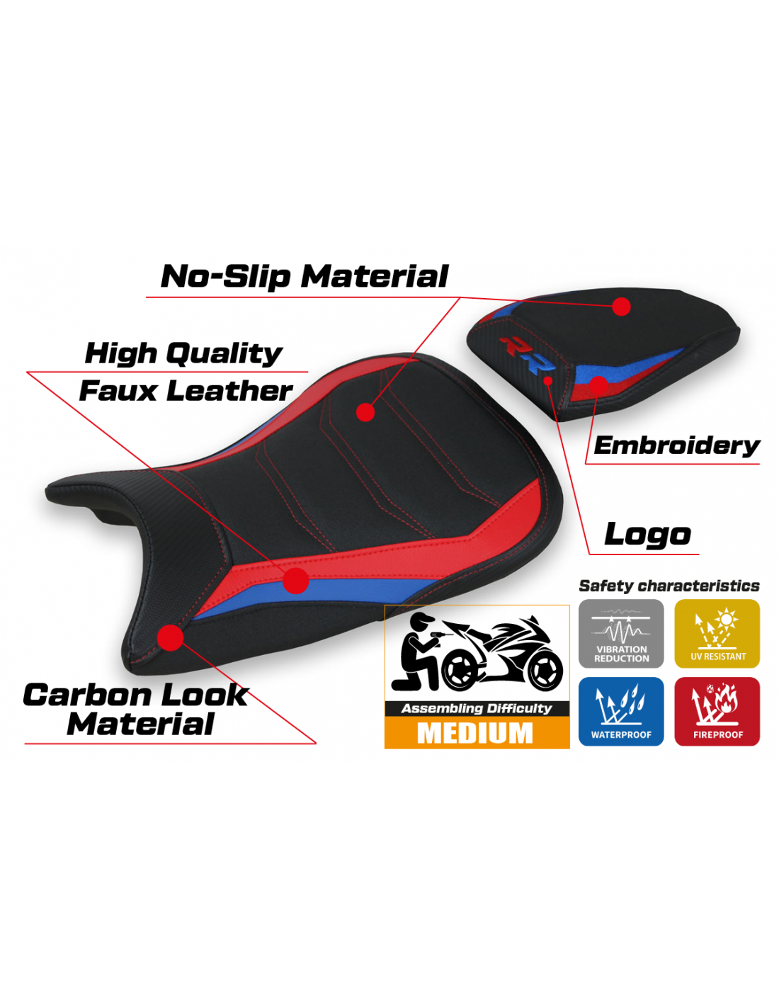 Verleihen Sie Ihrer BMW S 1000 RR M-Sport mit unserem Sitzbankbezug UltraGrip einen Hauch von Stil und Leistung.