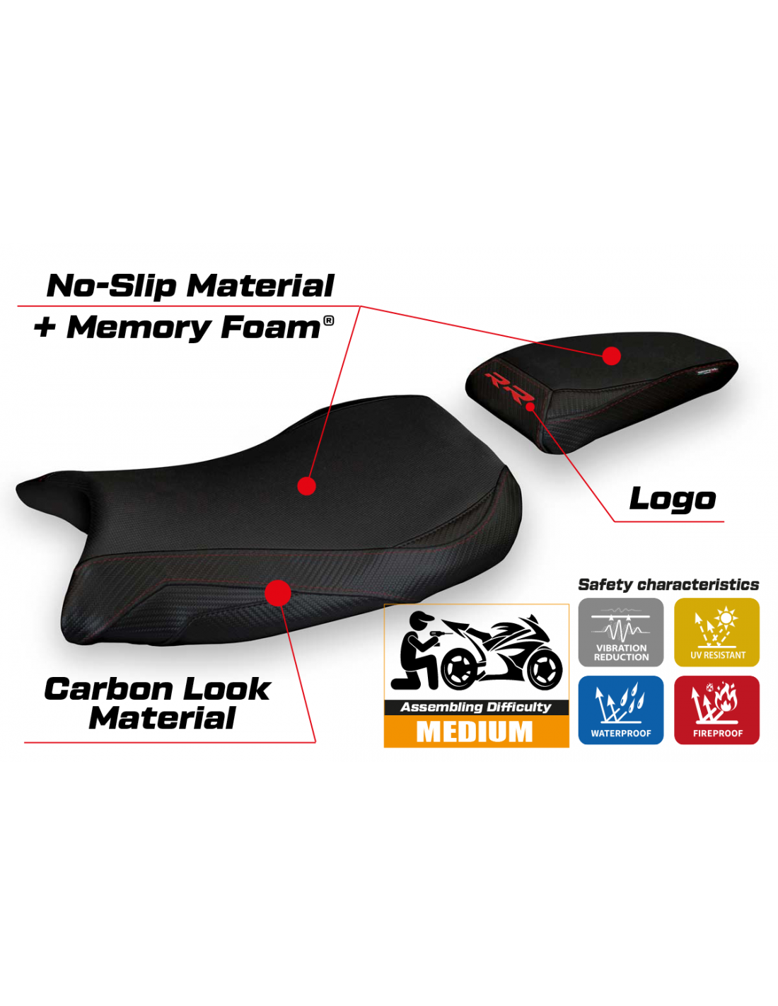 Sitzbezug kompatibel mit BMW S 1000 RR 2019-2025 – Modell Deruta 1 comfort system