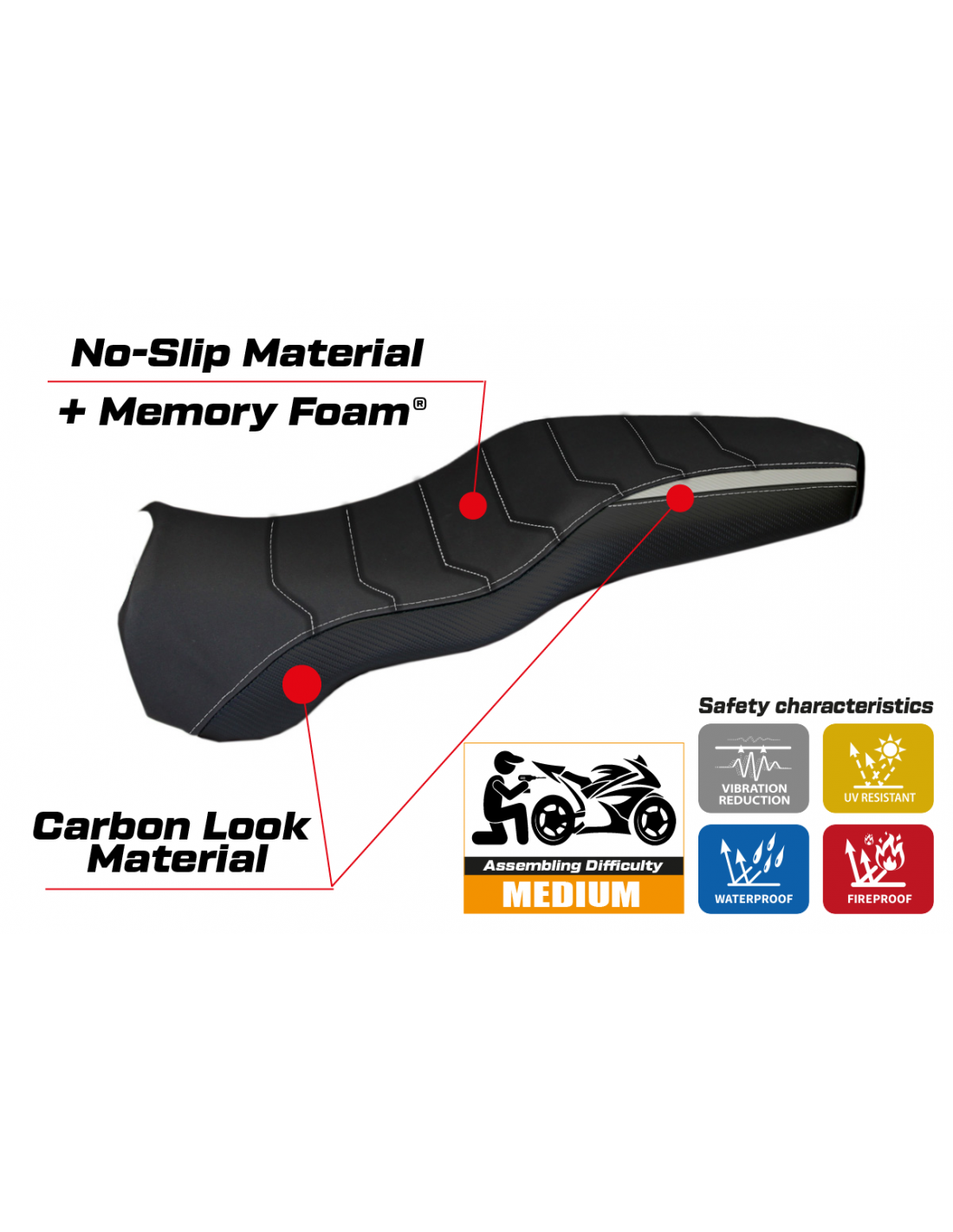 Der Sitzbezug wurde entwickelt, um eine perfekte Kombination aus Stil und Widerstandsfähigkeit zu bieten und eine stabilere und sicherere Fahrt unter allen Bedingungen zu gewährleisten.