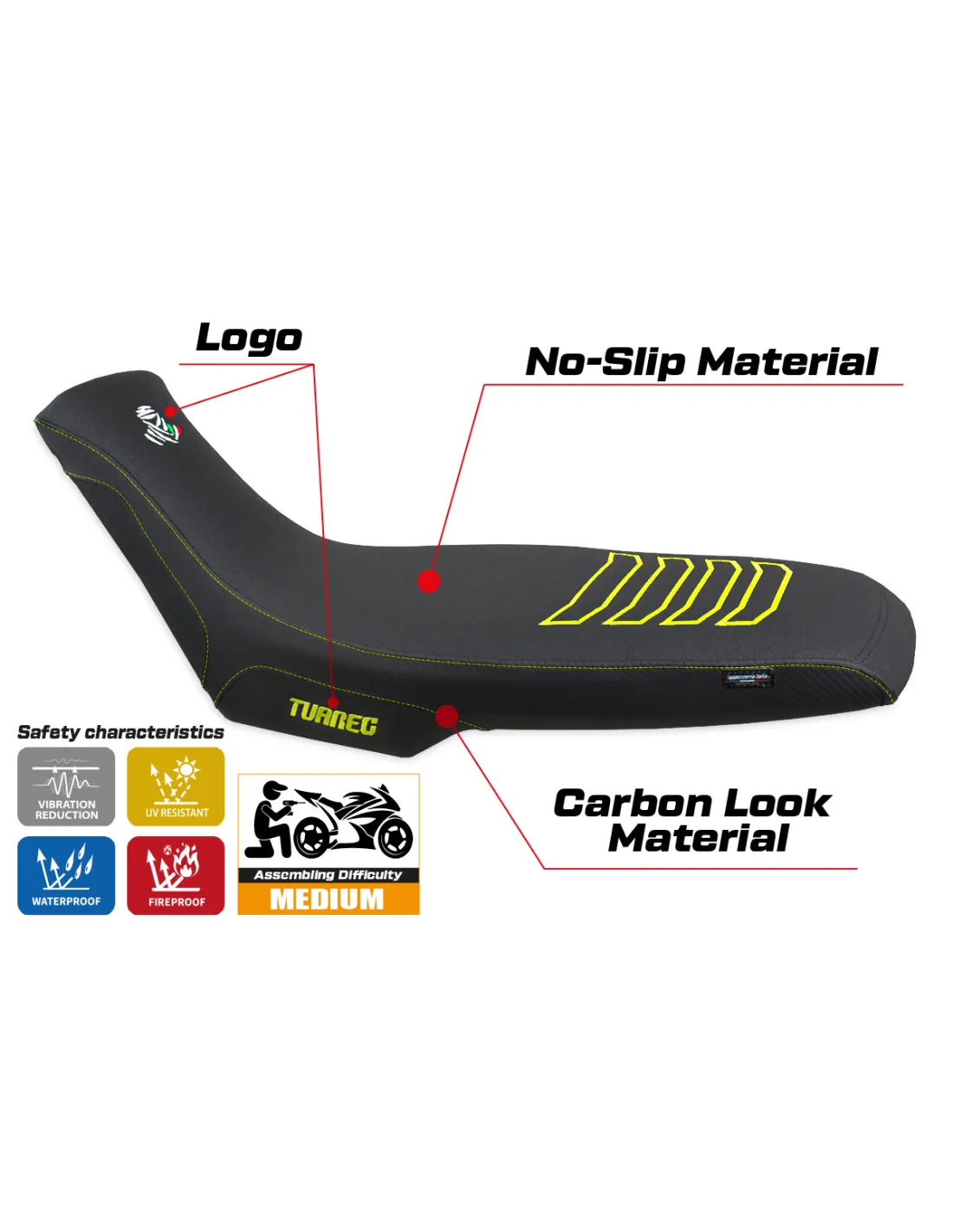 Der Sitzbankbezug wurde entwickelt, um eine perfekte Kombination aus Grip, Haltbarkeit und sportlicher, aggressiver Ästhetik zu bieten und sorgt für eine stabilere und sicherere Fahrt unter allen Bedingungen.