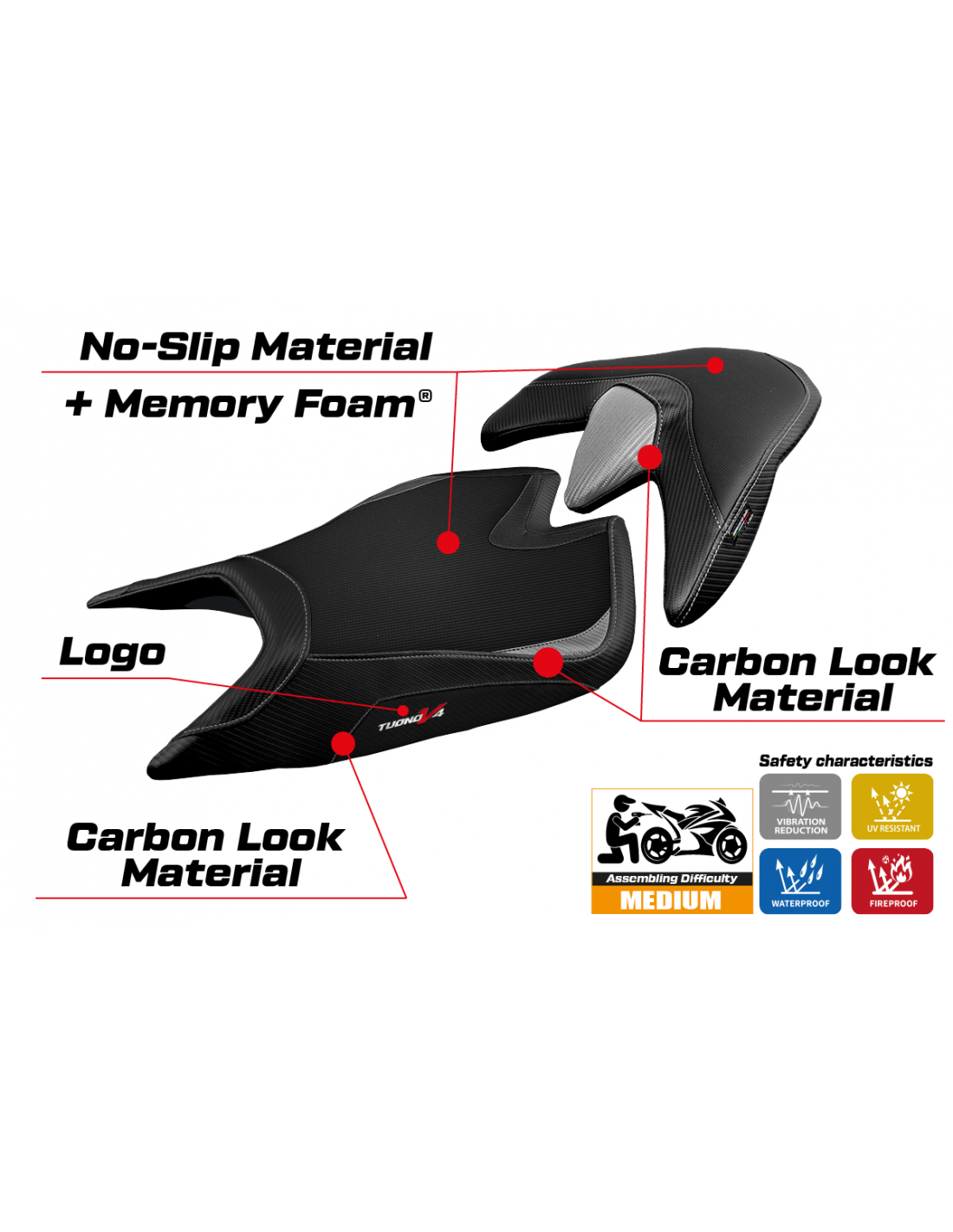 Sitzbezug kompatibel - Aprilia Tuono V4 2021-2025 - mod Zuera Comfort System