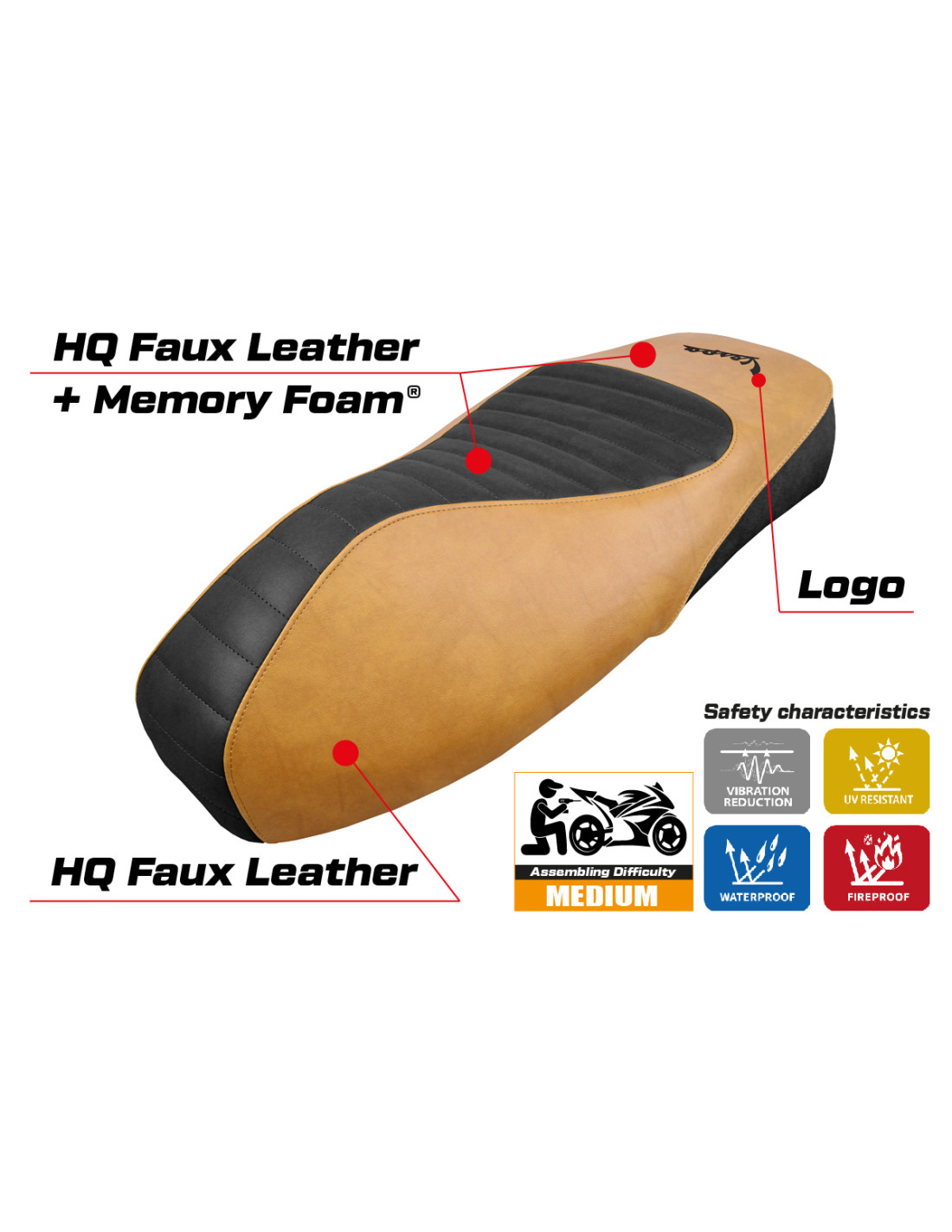 Der Sitzbezug wurde entwickelt, um eine perfekte Kombination aus Stil und Widerstandsfähigkeit zu bieten und eine stabilere und sicherere Fahrt unter allen Bedingungen zu gewährleisten.