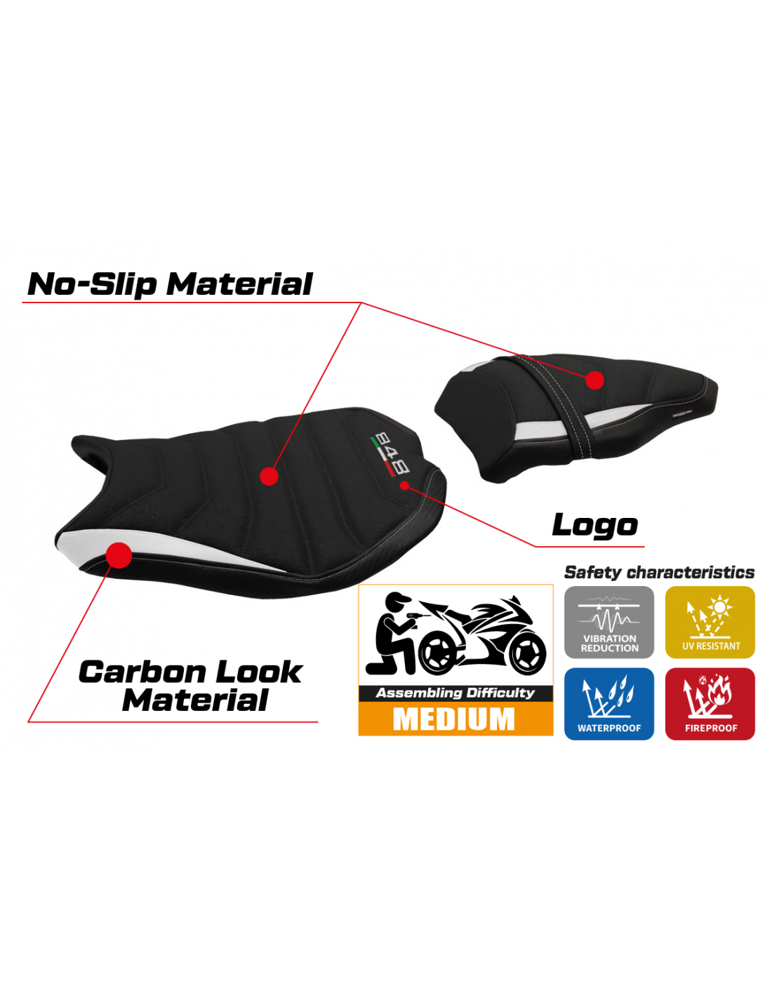 La funda de asiento está diseñada para ofrecer una combinación perfecta de agarre, durabilidad y estética deportiva y agresiva, asegurando una conducción más estable y segura en todas las condiciones.