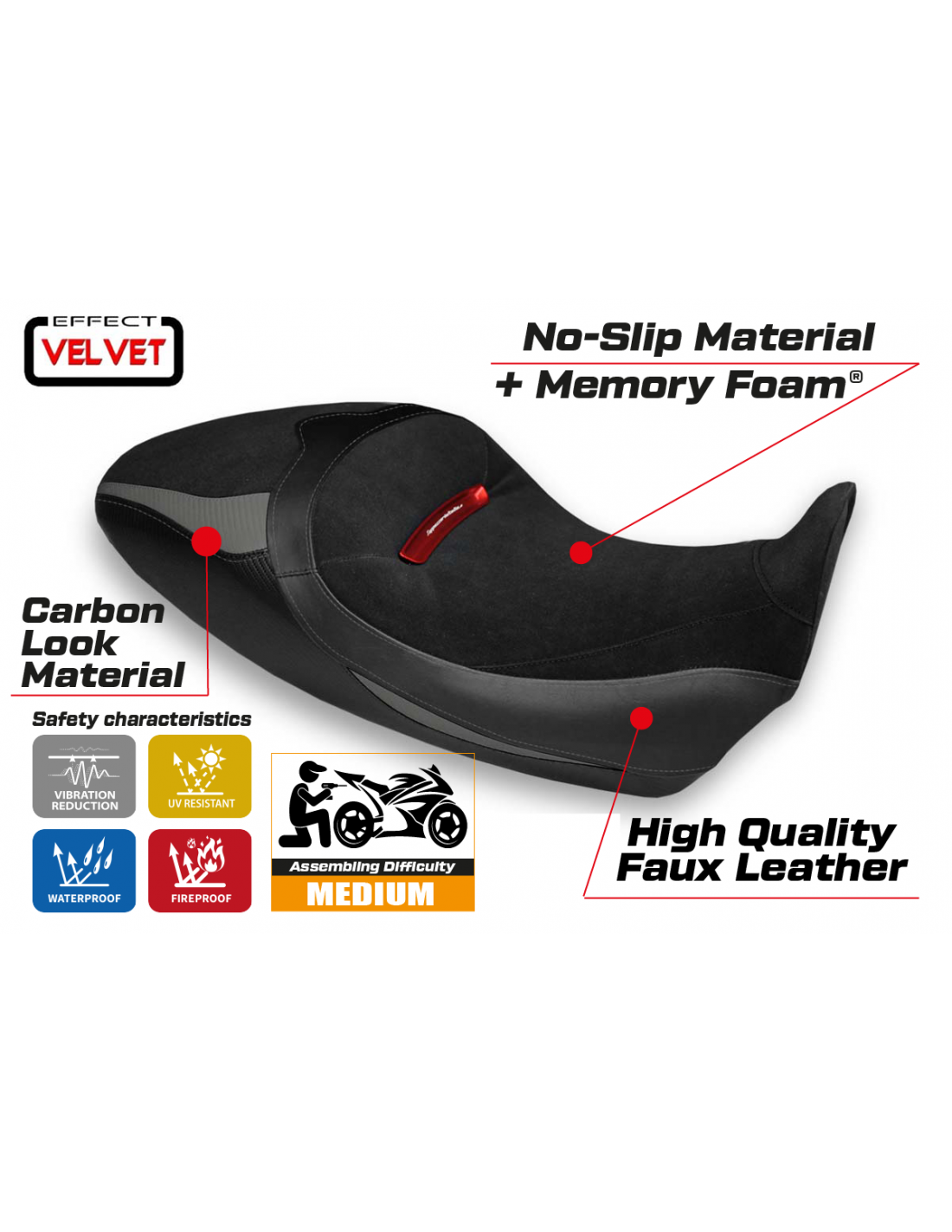 Funda de asiento compatible con Ducati Diavel 1260 S (19-22) modelo Costanza 1 velvet comfort system