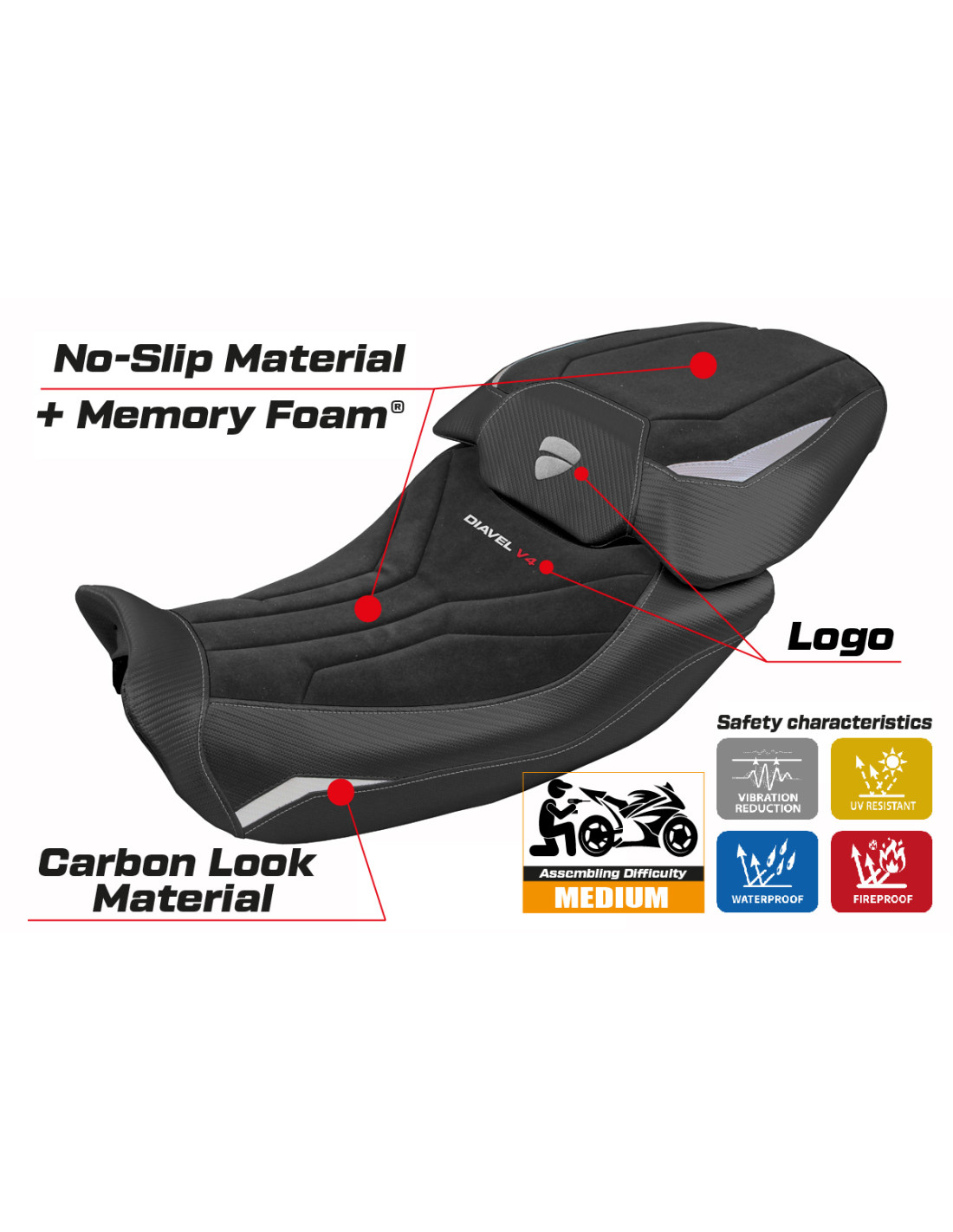 Funda de asiento compatible Ducati Diavel V4 2023-2025 – Modelo Diablo Velvet Comfort System