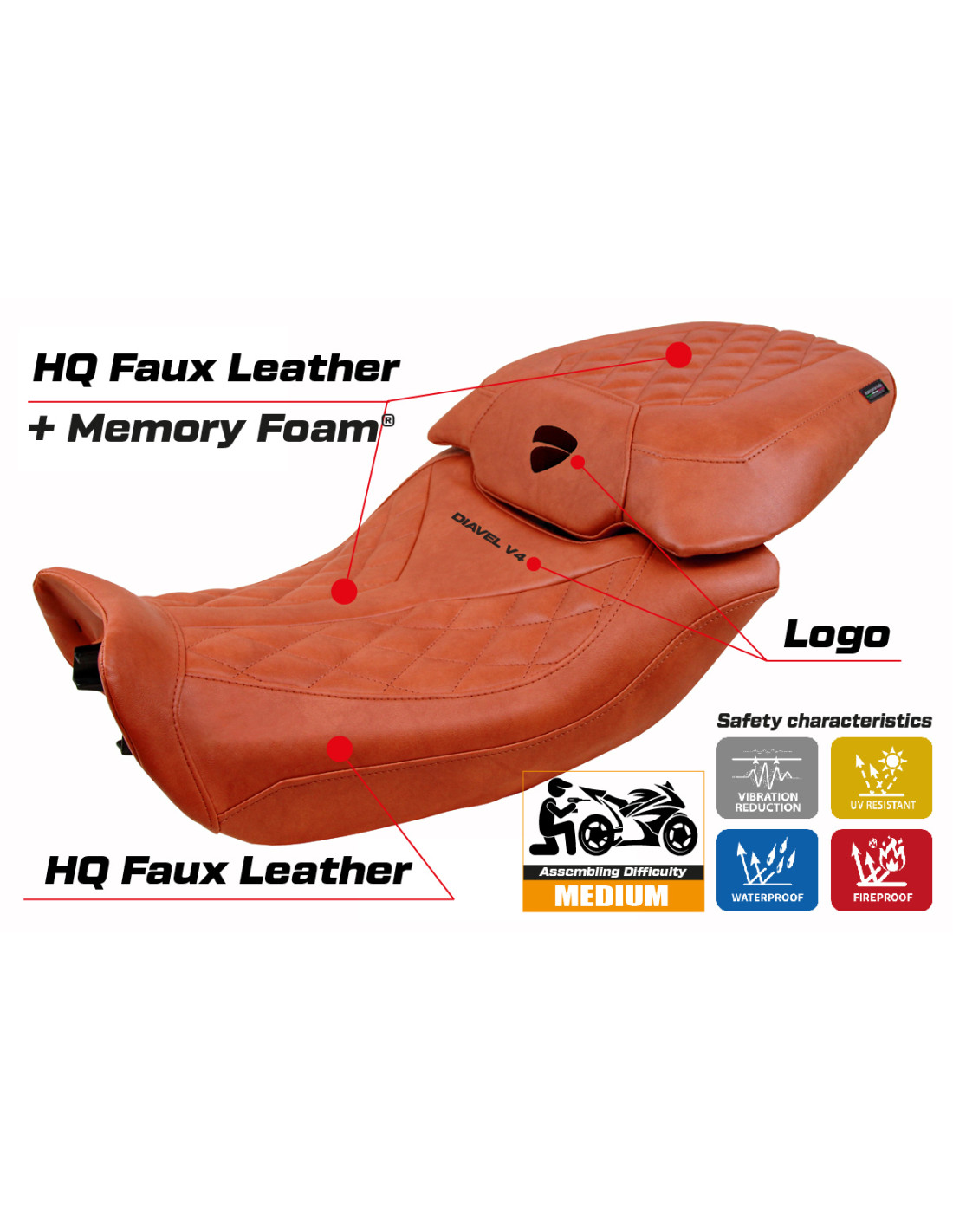 Funda de asiento compatible - Ducati Diavel V4 2023-2025 - mod Diablo Class Comfort System
