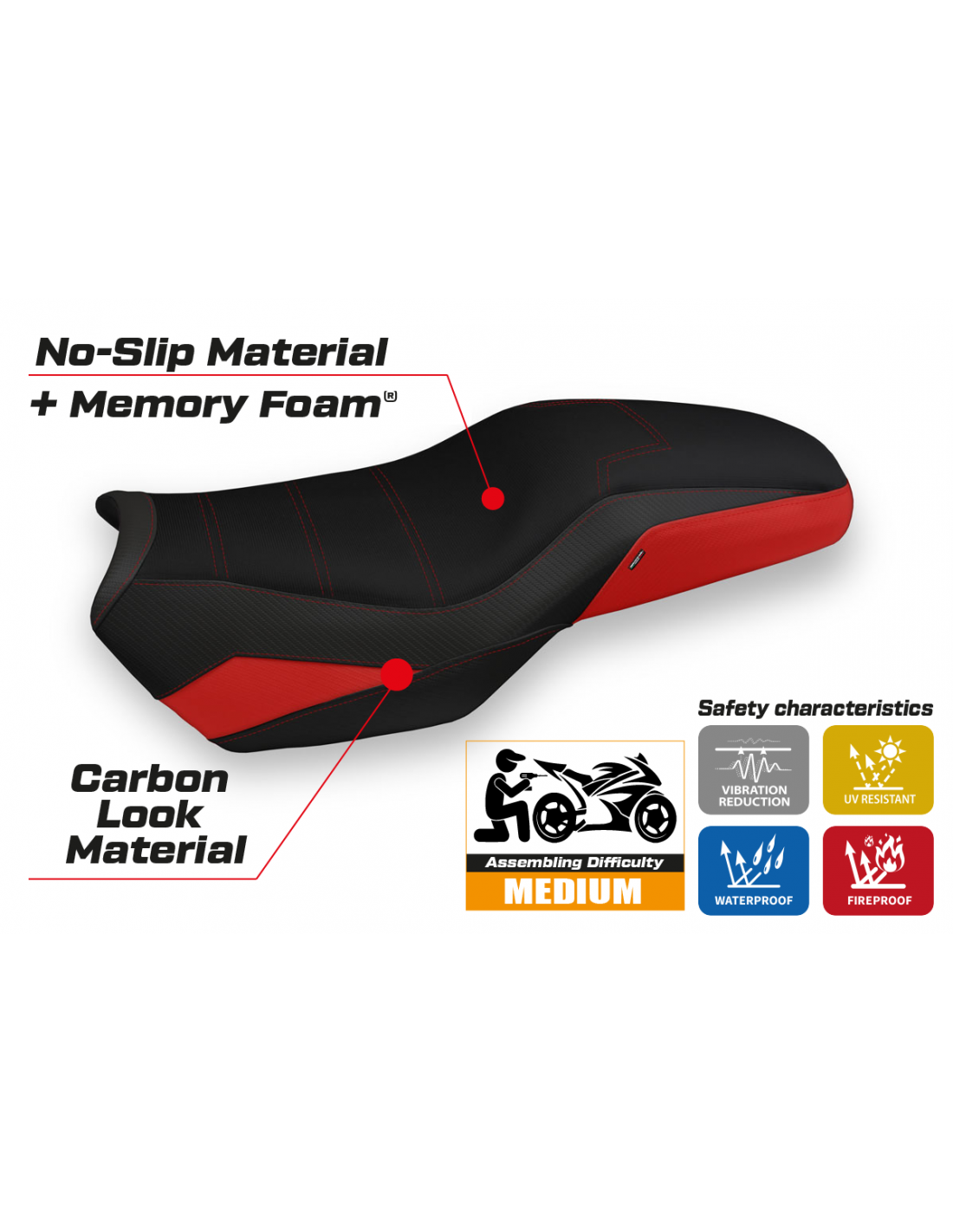 La funda del asiento se combina con una espuma de látex especial, que proporciona una amortiguación extra. Este material es conocido por su capacidad de absorber vibraciones, distribuyendo uniformemente el peso del piloto sobre el asiento. El resultado es una reducción de la presión en los puntos de contacto, aumentando el confort incluso en viajes prolongados.