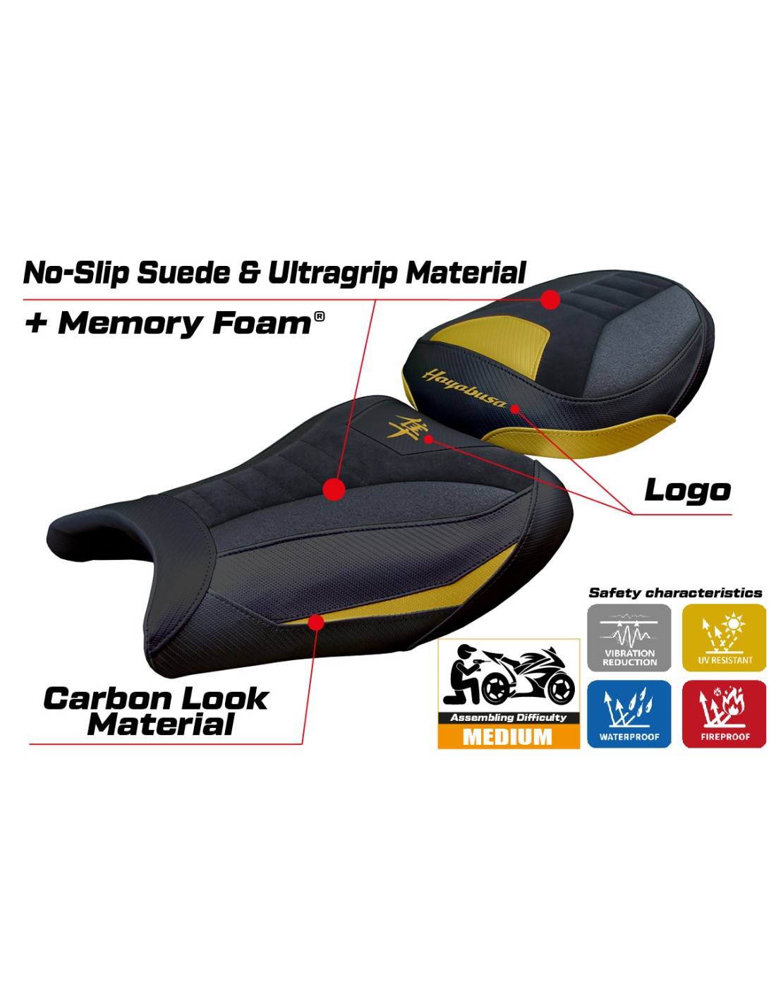 Funda de asiento compatible Suzuki GSX R 1300 Hayabusa 2021 - 2025 – Modelo Denia velvet ultragrip comfort system