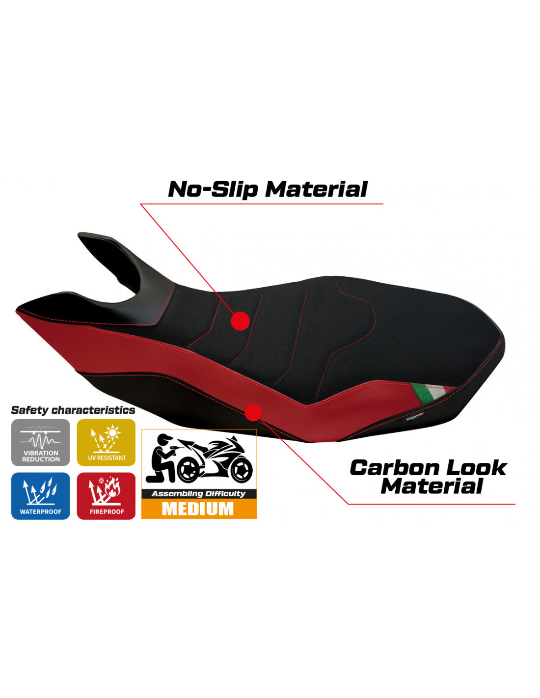Funda de asiento compatible con Ducati Hypermotard 796/1100/1100 EVO 2007 - 2012 – Modelo Ribe 2 ultragrip