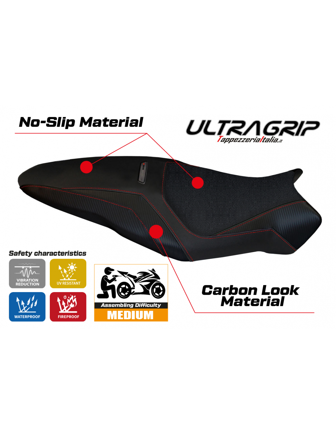 La funda UltraGrip tiene una superficie extremadamente rugosa, diseñada para minimizar el deslizamiento del piloto en el asiento. - Ideal para conducción deportiva y en pista