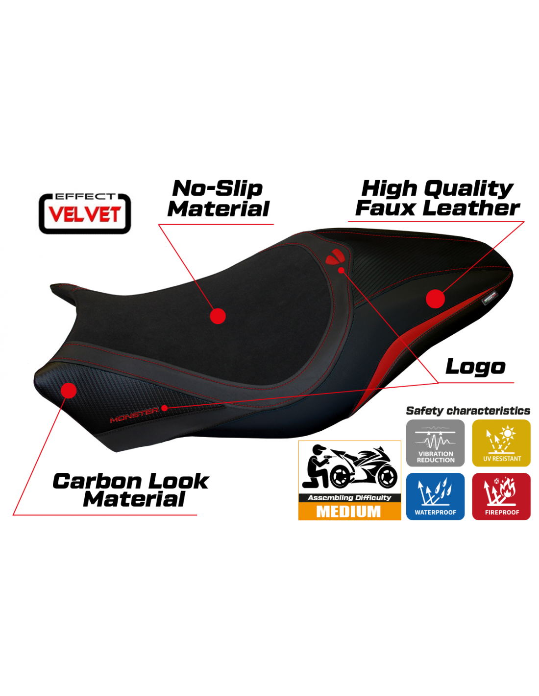 Funda de asiento compatible - Ducati Monster 797 2017 - 2020 - mod Alzira Velvet