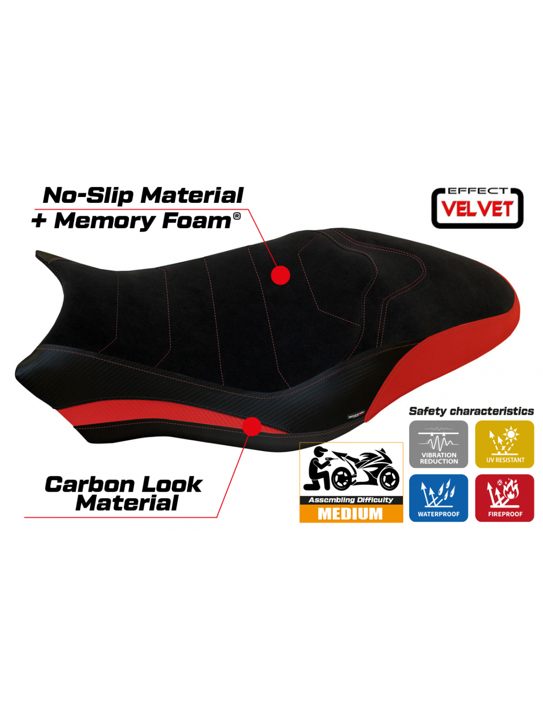 Funda de asiento compatible con Ducati Monster 821/1200 (17-20) modelo Ovada 1 Velvet comfort system