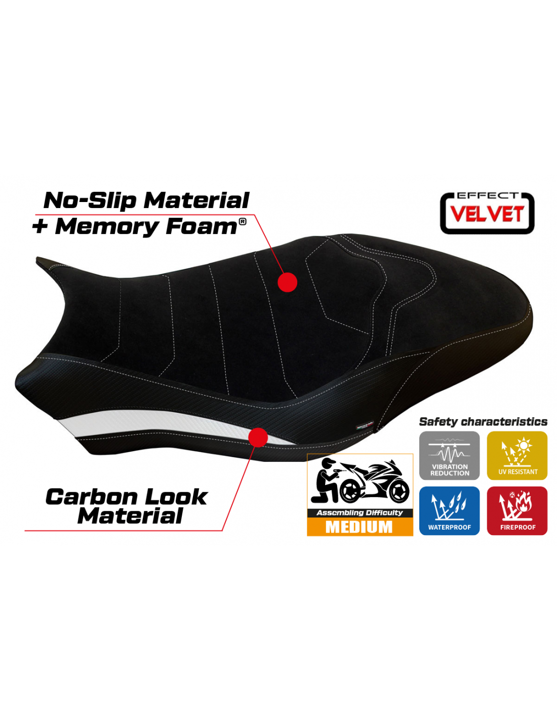 Funda de asiento compatible con Ducati Monster 821/1200 (17-20) modelo Ovada 2 Velvet comfort system