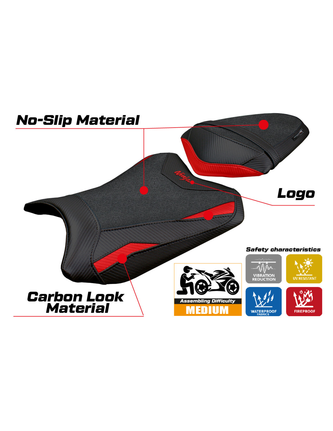 Funda de asiento compatible con Kawasaki Ninja 300 2013 - 2017 – Modelo Aliko ultragrip