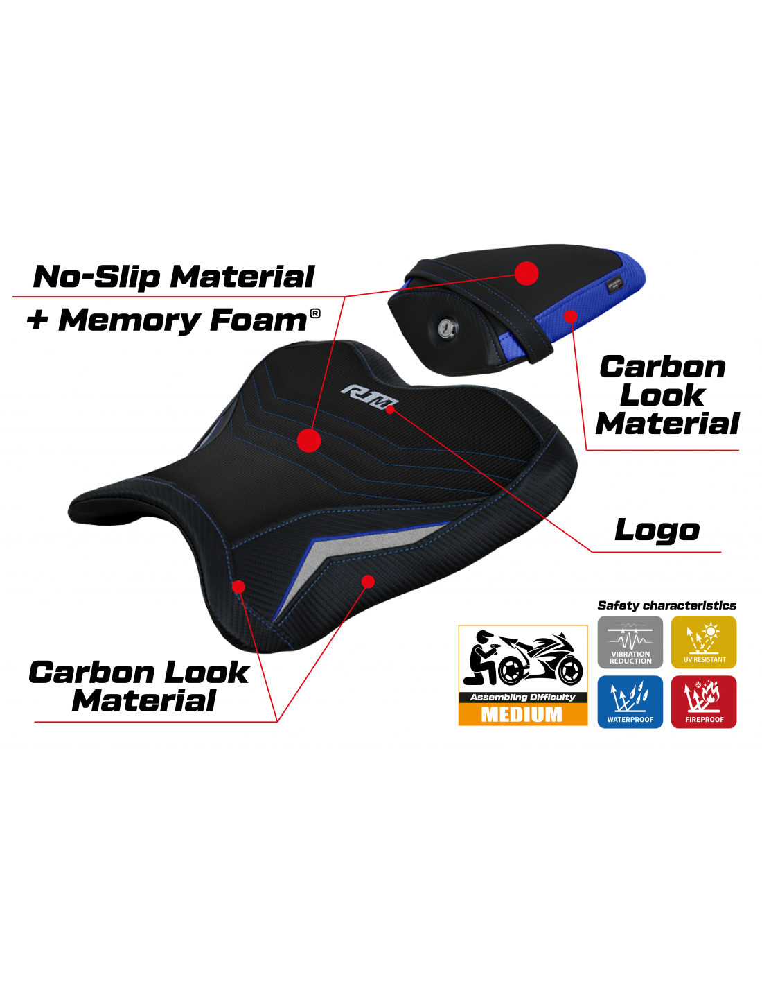 Funda de asiento compatible - Yamaha R1M 2015-2025 - mod Brita Comfort System