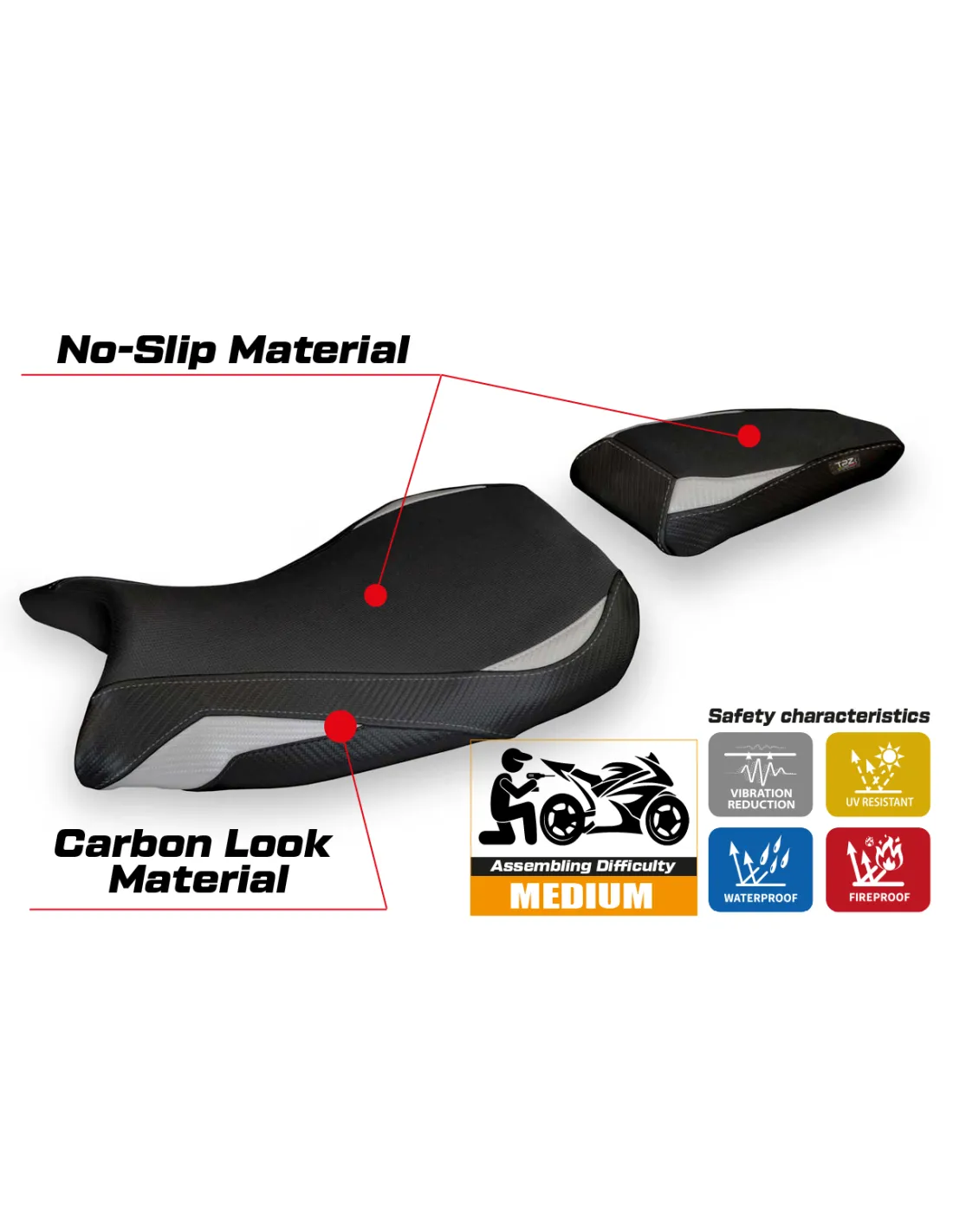 ATENCIÓN: Esta funda es compatible solo con las versiones del asiento Standard OEM (810/830/850 mm). NO es adecuada para la versión del asiento Sport M.