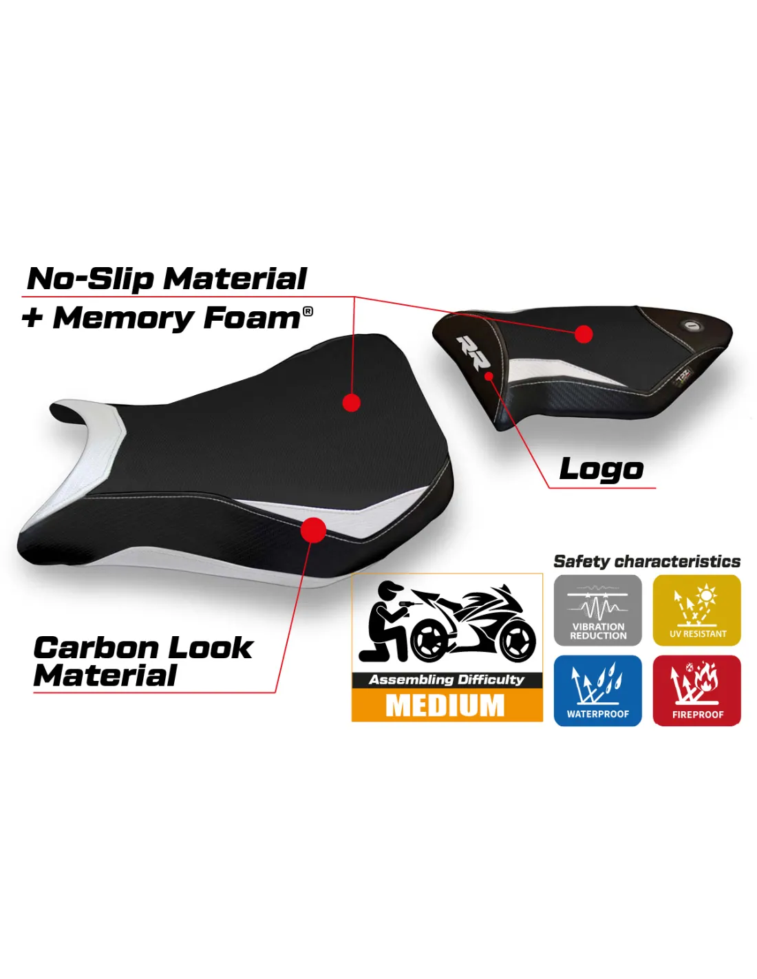 Funda de asiento compatible BMW S 1000 RR 2012 - 2014 – Modelo Dacca 2 comfort system