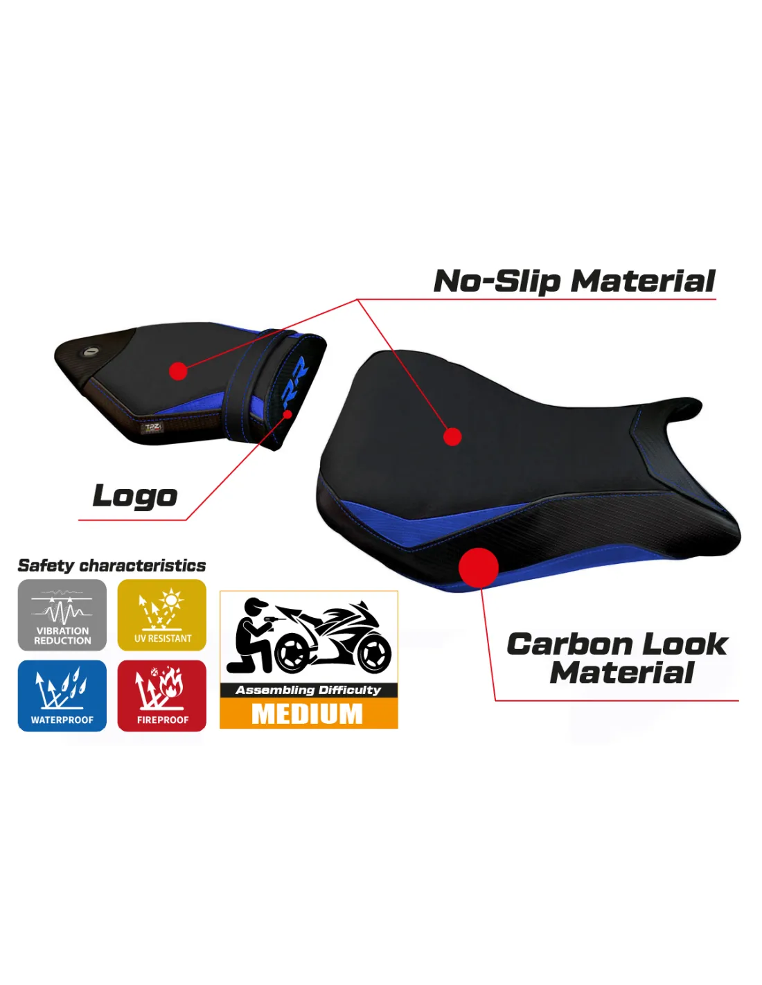 Funda de asiento compatible BMW S 1000 RR (15-18) modelo Hakha