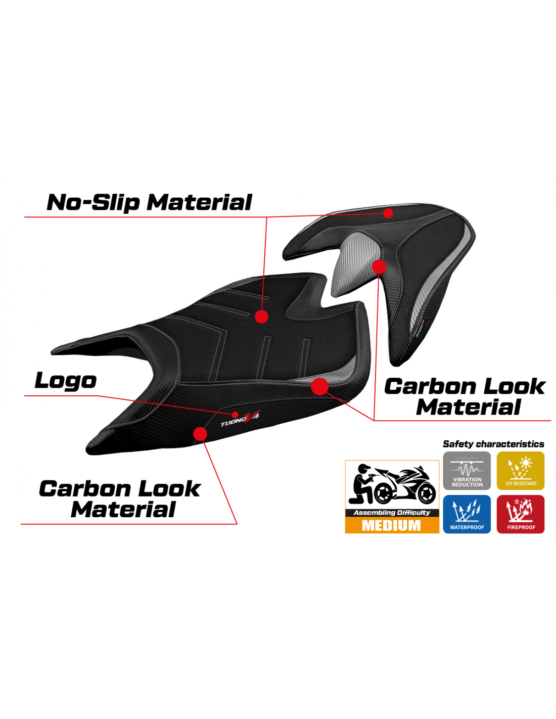 Añade estilo y rendimiento a tu Aprilia Tuono V4 con nuestra funda de asiento UltraGrip.
