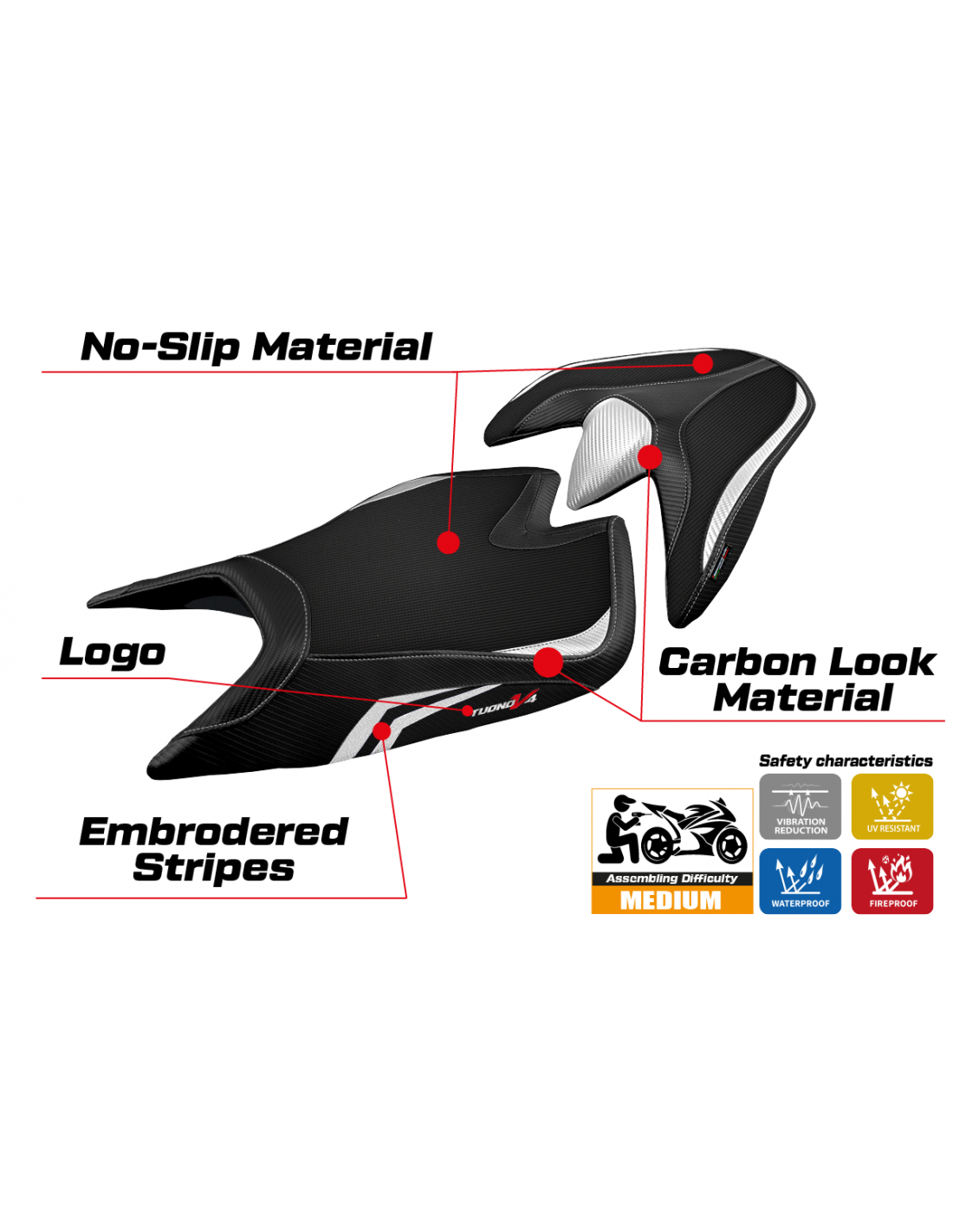 Funda de sillín compatible Aprilia Tuono V4 2021-2025 – Modelo Zuera special color