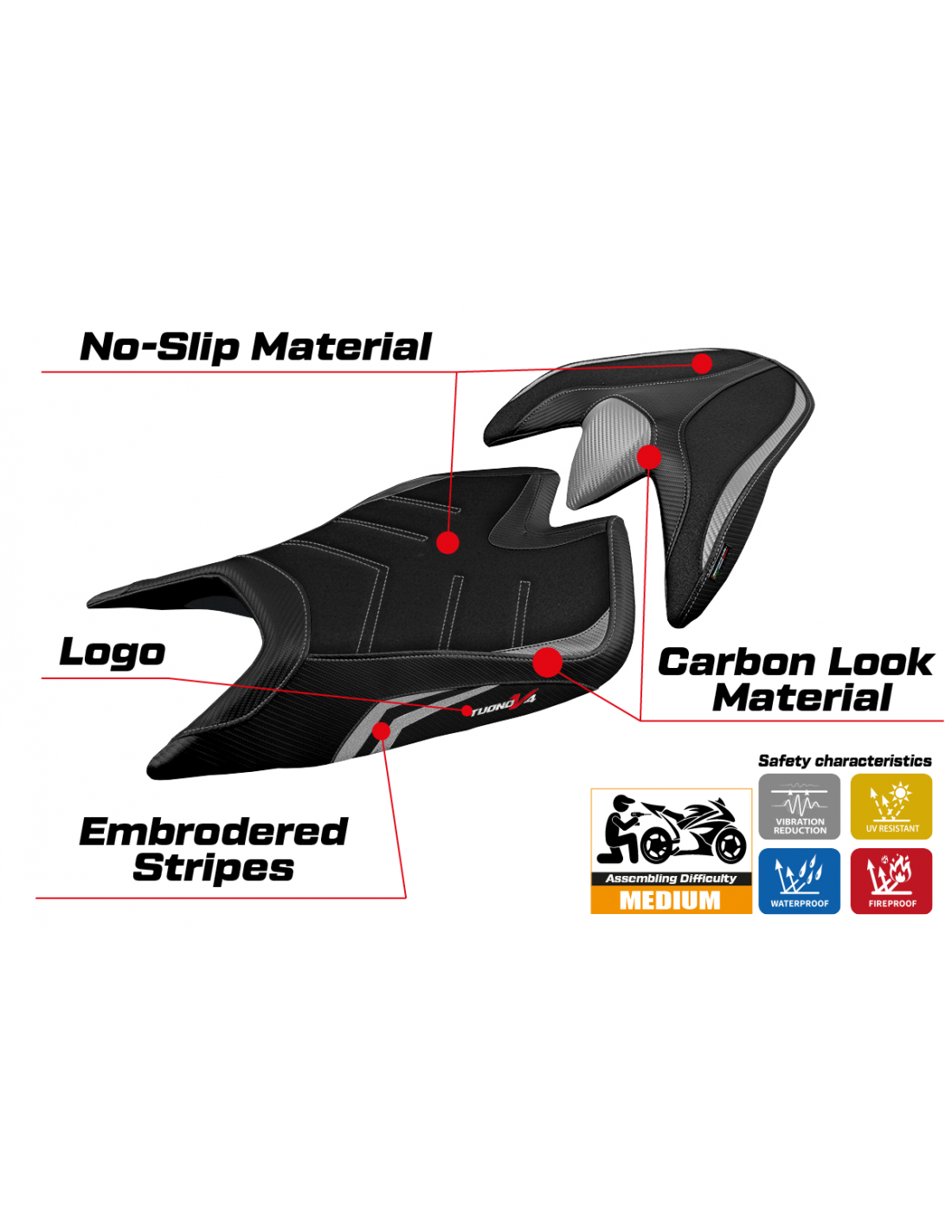 Funda de asiento compatible con Aprilia Tuono V4 2021-2025 – mod Zuera special color ultragrip