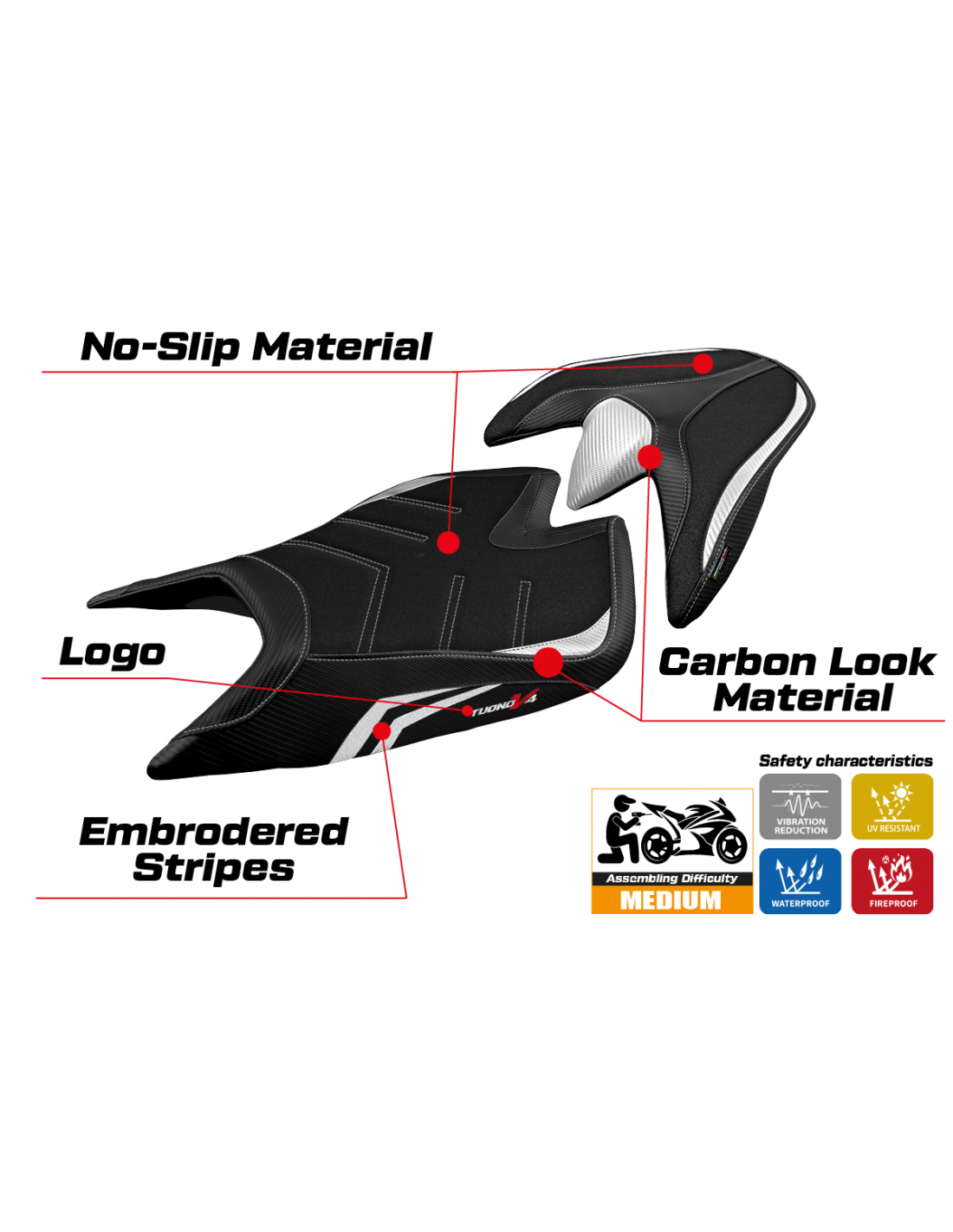 Añade estilo y rendimiento a tu Aprilia Tuono V4 con nuestra funda de asiento UltraGrip.