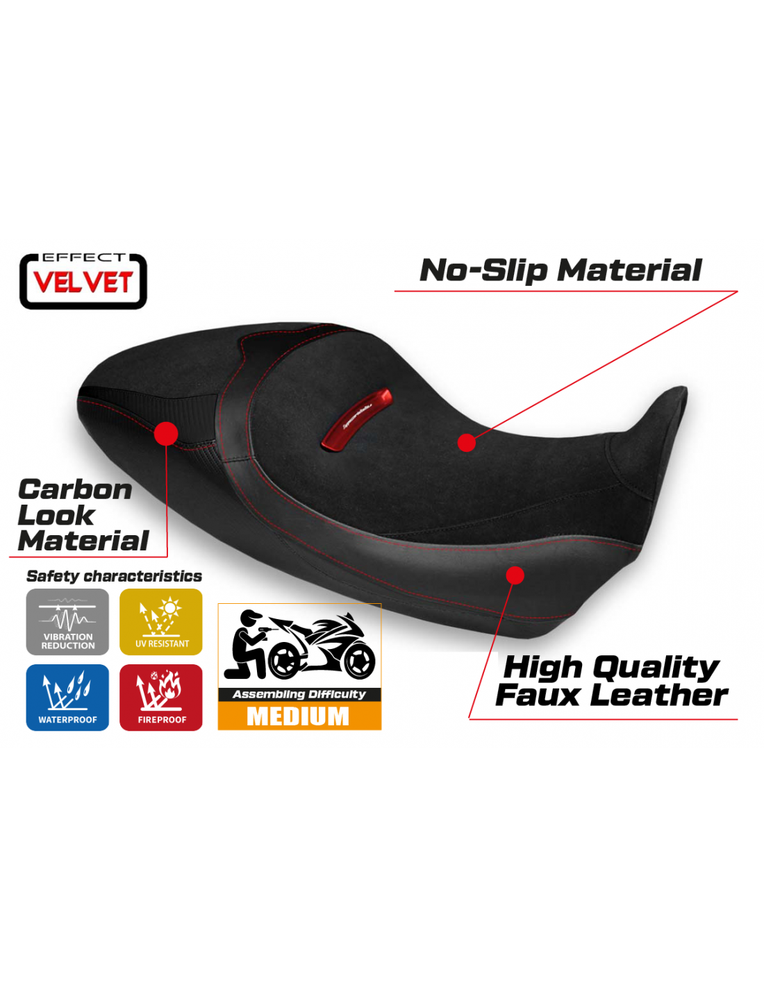 La housse de selle est conçue pour offrir une combinaison parfaite entre style et durabilité, garantissant une conduite plus stable et sécurisée dans toutes les conditions.