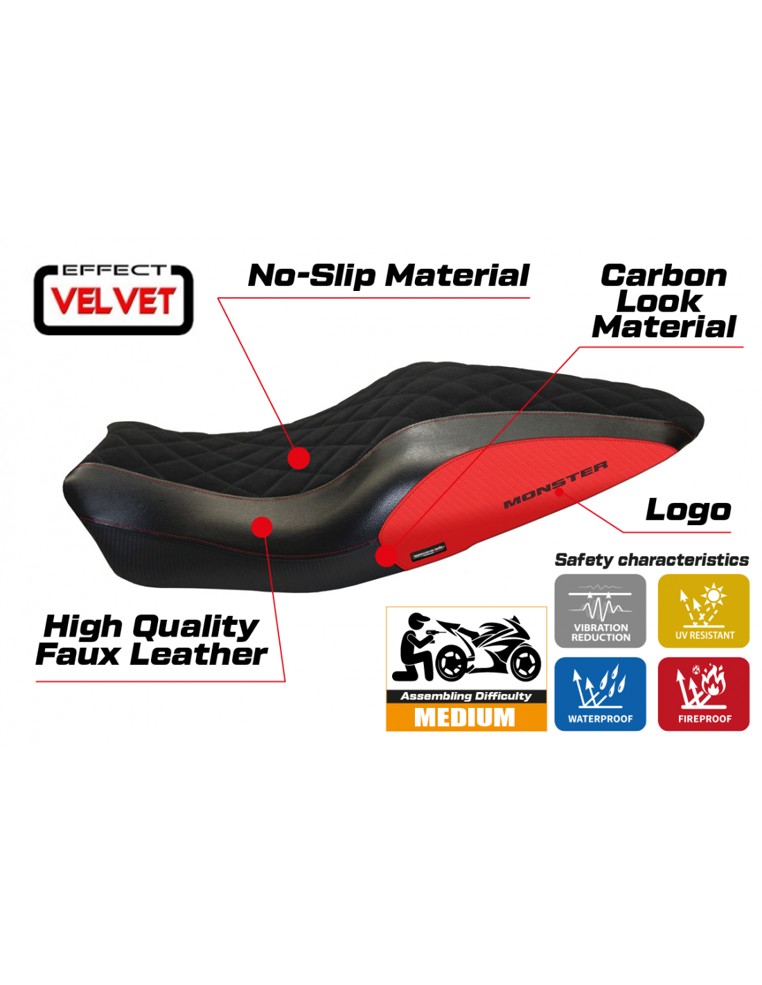 TAPPEZZERIA ITALIAHousse de selle compatible Ducati Monster 821/1200 2014 - 2016 – Modèle Andorra Velvet