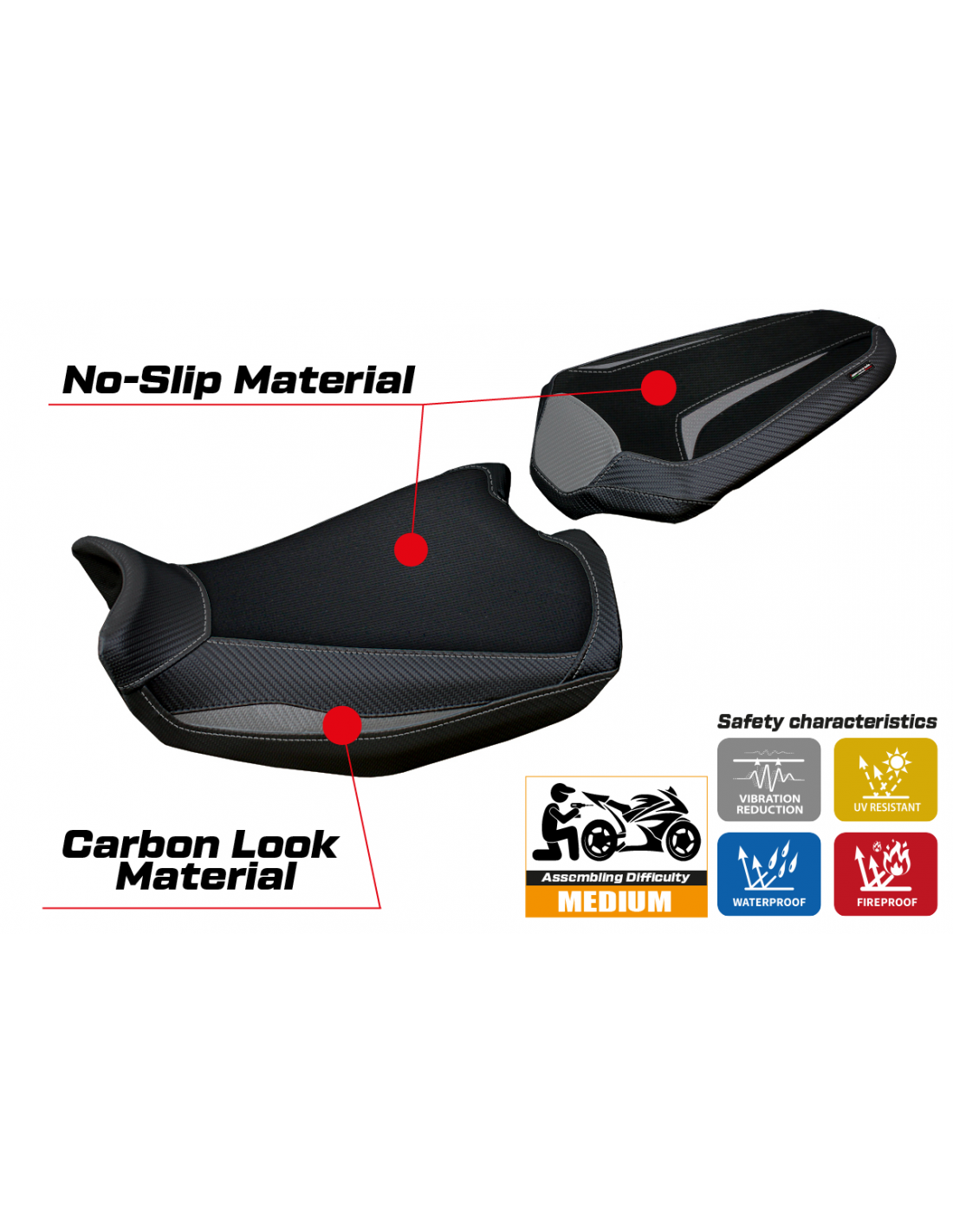 Les housses de selle Tappezzeria Italia sont fabriquées avec des matériaux techniques 100% PVC de qualité marine, imprimées avec différentes textures telles que l'effet carbone, cordura, cuir suédé, cuir et bien plus encore. Elles sont spécialement conçues pour offrir une adhérence et un style nettement améliorés.