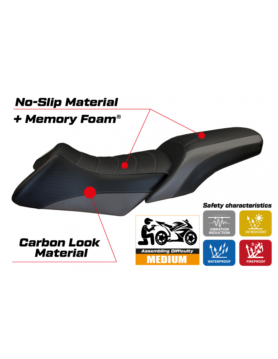 Cette technologie est spécialement conçue pour les motards qui parcourent de longues distances et ont besoin d'une selle qui minimise la fatigue et offre un soutien optimal.