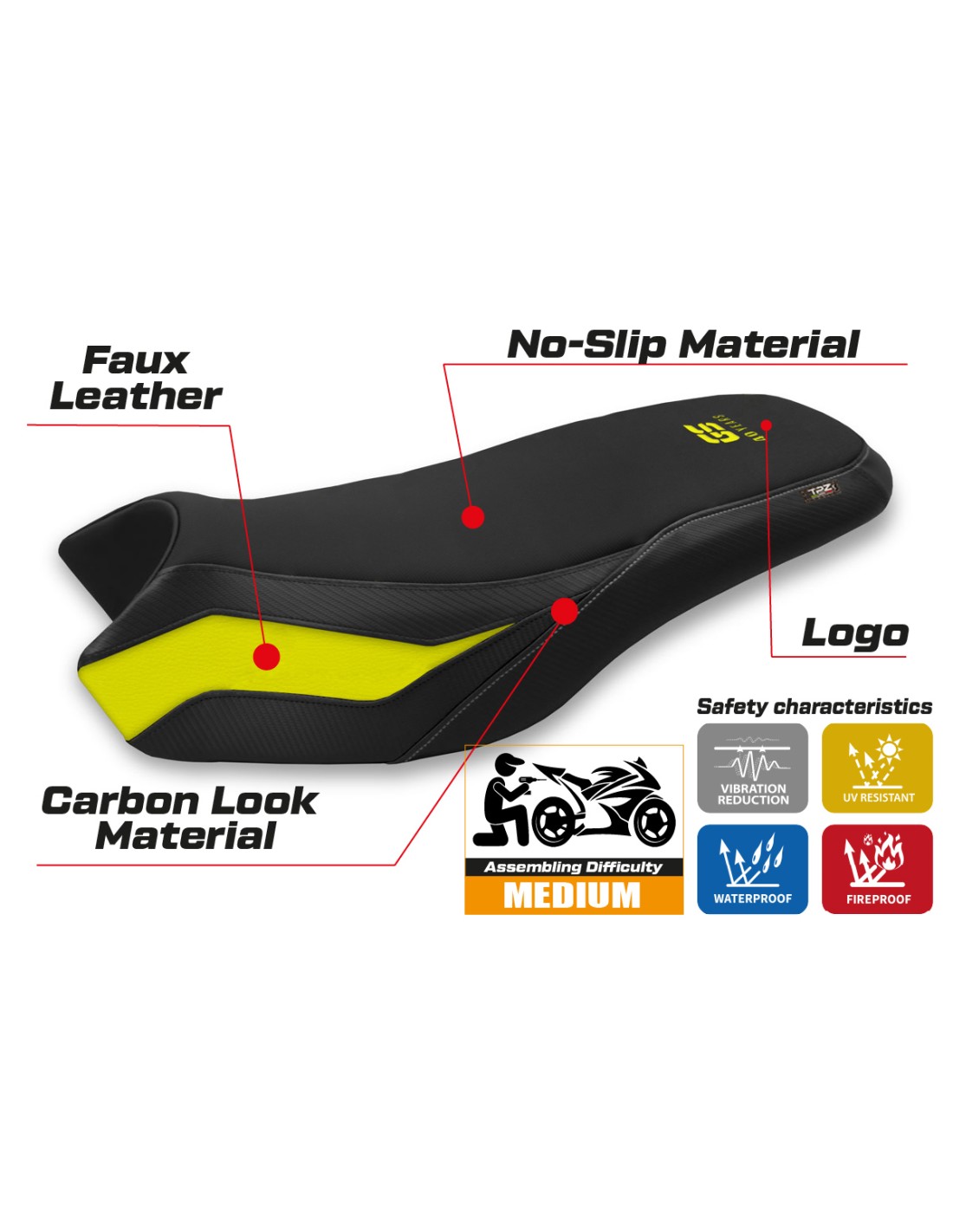 La housse de selle est conçue pour offrir une combinaison parfaite entre style et durabilité, garantissant une conduite plus stable et sécurisée dans toutes les conditions.