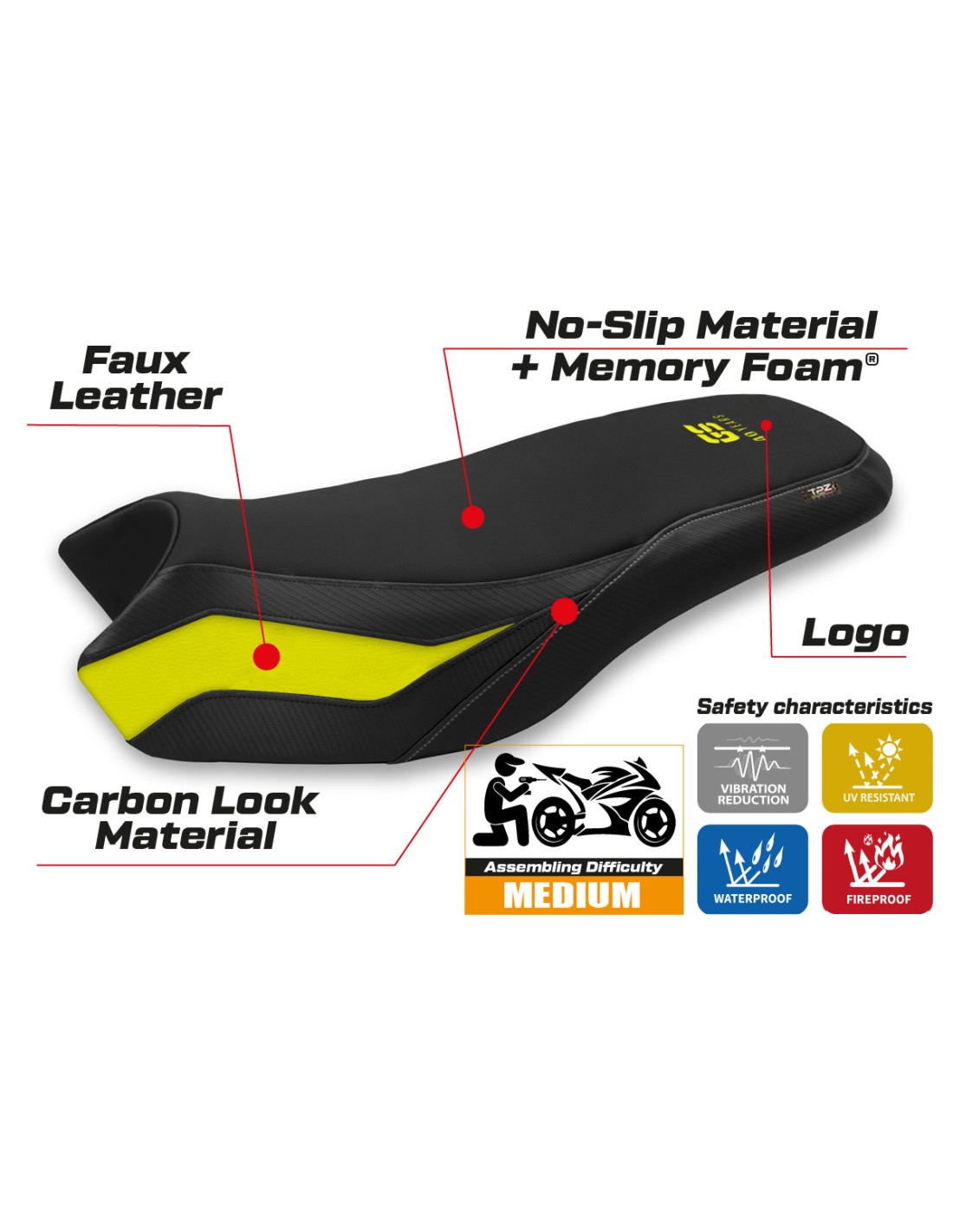 Les housses de selle Tappezzeria Italia sont fabriquées avec des matériaux techniques 100 % PVC de qualité marine, imprimés avec diverses textures telles que carbon look, ultragrip, cordura, daim, cuir et autres. Conçues spécifiquement pour une meilleure adhérence et un style amélioré.