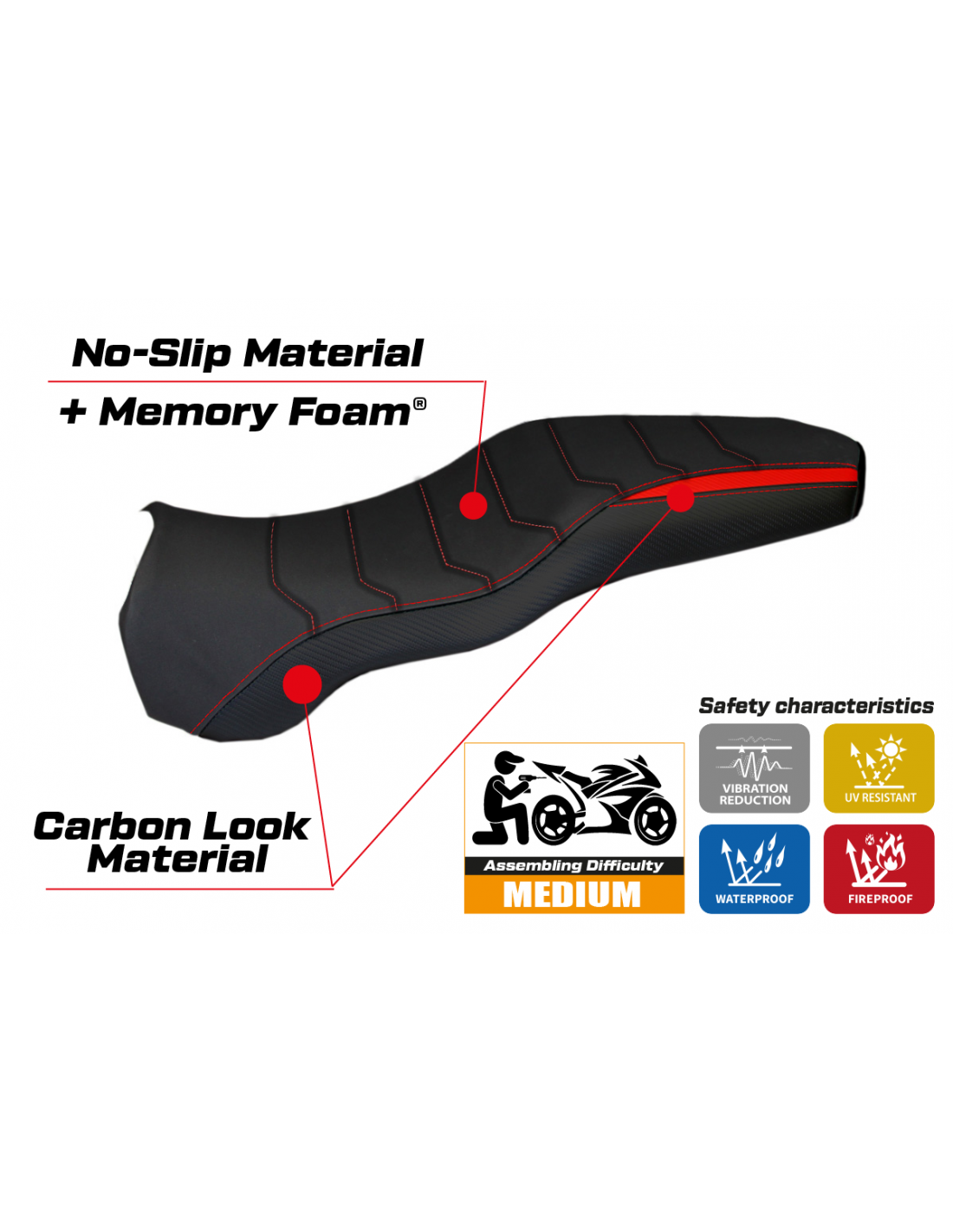 La housse de selle est associée à une mousse en latex spéciale offrant un amortissement supplémentaire. Ce matériau est reconnu pour sa capacité à absorber les vibrations, répartissant uniformément le poids du pilote sur la selle. Le résultat est une réduction de la pression sur les points de contact, augmentant ainsi le confort même lors de longs trajets.
