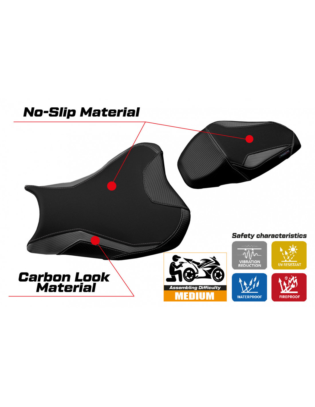 Les housses de selle Tappezzeria Italia sont fabriquées avec des matériaux techniques 100% PVC de qualité marine, imprimées avec différentes textures telles que l'effet carbone, cordura, cuir suédé, cuir et bien plus encore. Elles sont spécialement conçues pour offrir une adhérence et un style nettement améliorés.