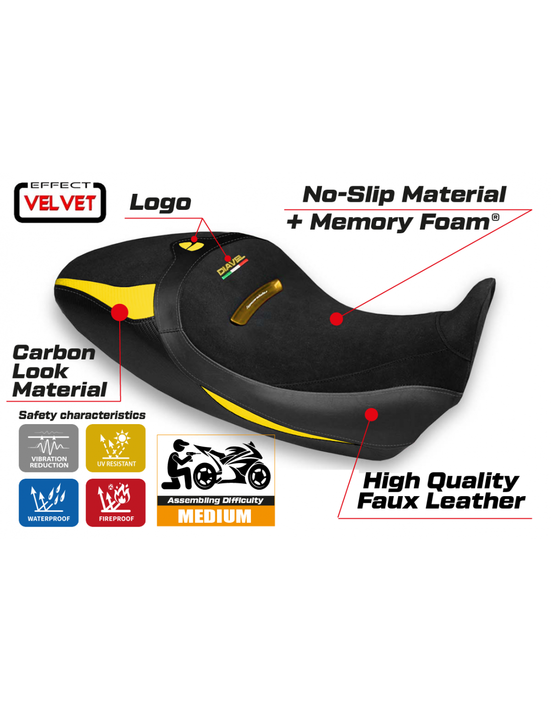 Seat cover compatible Ducati Diavel 1260 S 2019 - 2022 – Model Costanza 1 velvet comfort system