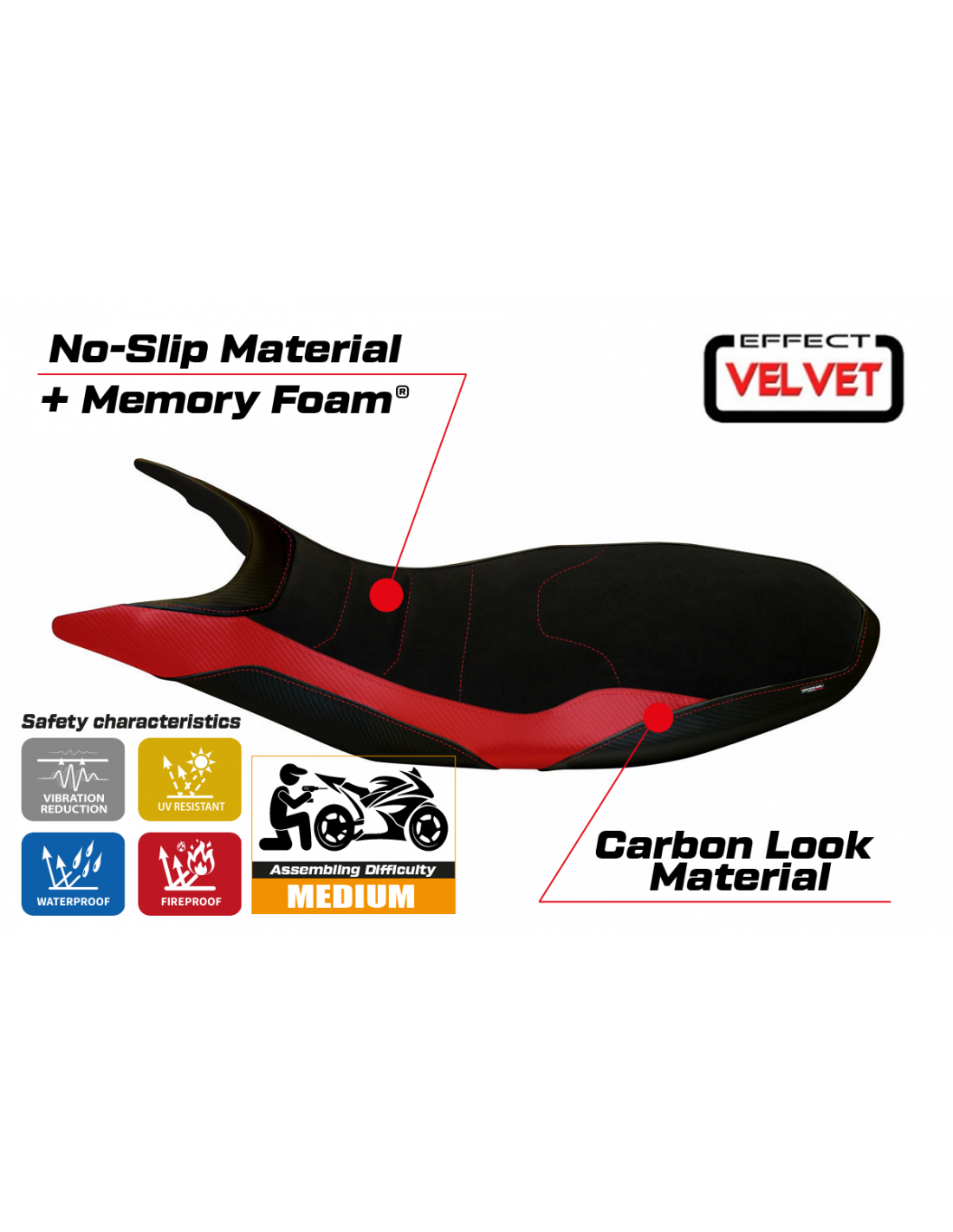 Seat cover compatible Ducati Hypermotard 821 / 939 2013 - 2018 – Model Varna 1 Velvet comfort system