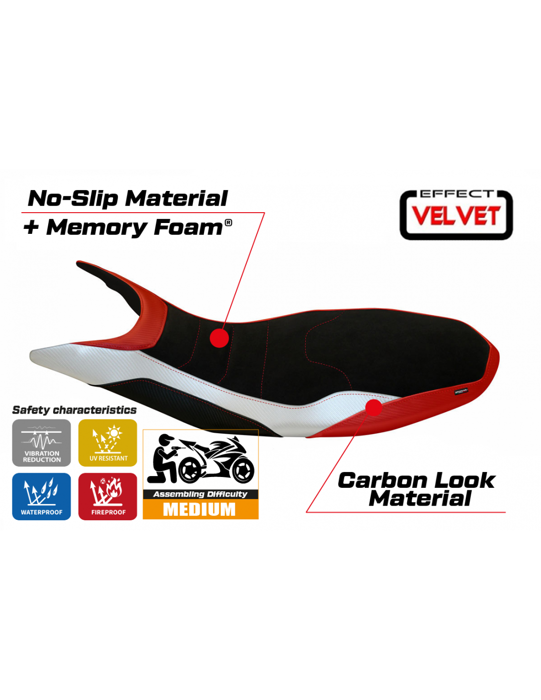 Seat cover compatible Ducati Hypermotard 821 / 939 2013 - 2018 – Varna special color velvet comfort system