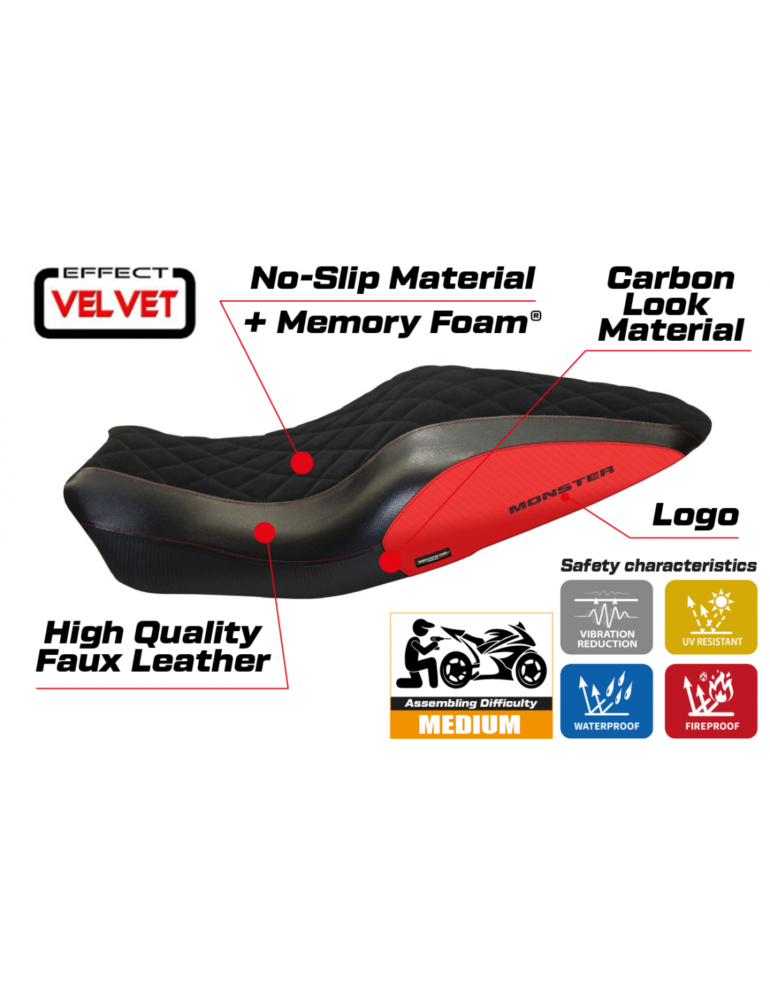 Seat cover compatible Ducati Monster 821 / 1200 2014 - 2016 – Model Andorra Velvet comfort system