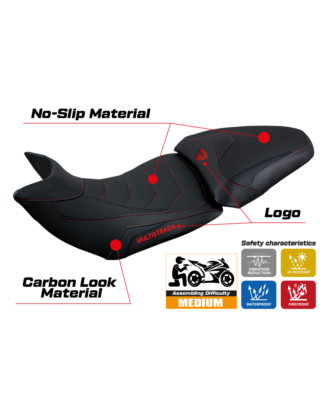 Seat Cover Compatible with Ducati Multistrada 1200 / 1260 2015 - 2020 – mod Jazan ultragrip