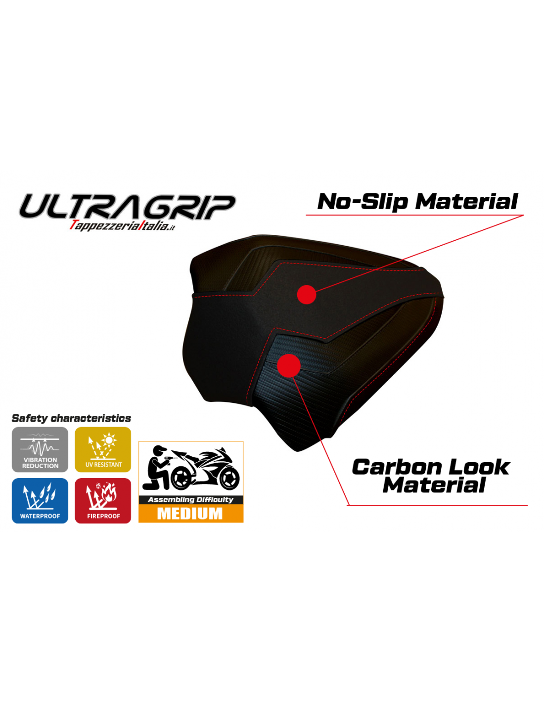 Take your Ducati Panigale V4 to a new level of control, safety, and style with the UltraGrip seat cover from Tappezzeria Italia!