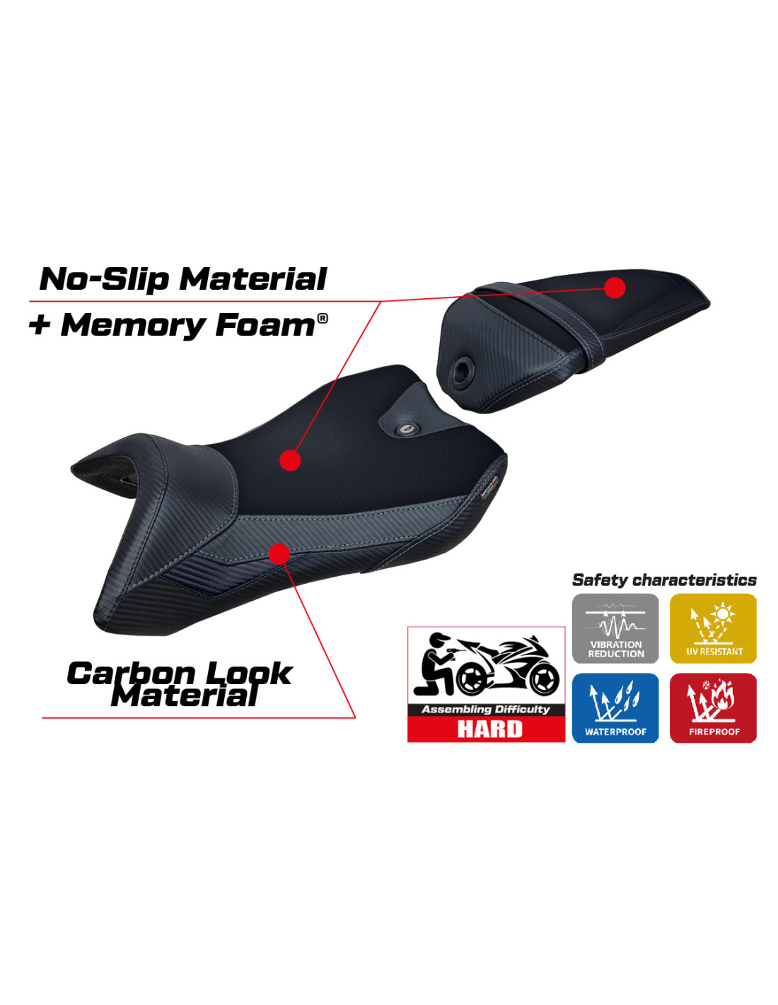 ✔ Enhances comfort and reduces riding fatigue with integrated memory foam.