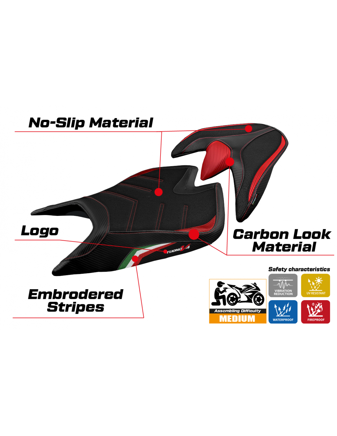 Take your Aprilia Tuono V4 to a new level of control, safety, and style with the UltraGrip seat cover from Tappezzeria Italia!