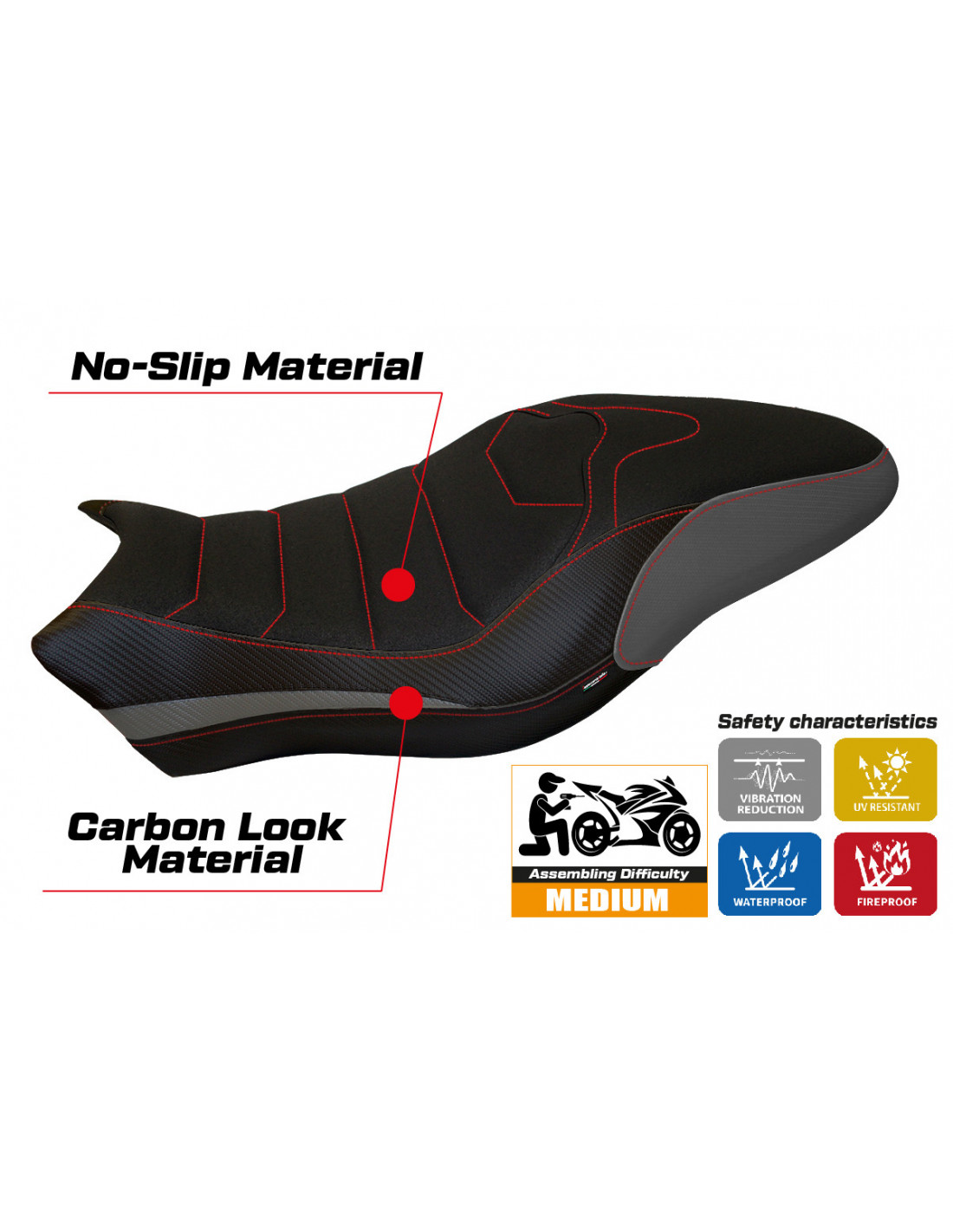 Il rivestimento UltraGrip è realizzato con una superficie estremamente ruvida al tatto, studiata per ridurre al minimo lo scivolamento del pilota sulla sella. Questo è particolarmente utile in accelerazione, frenata e nelle curve, garantendo una posizione più stabile e sicura sulla moto.
