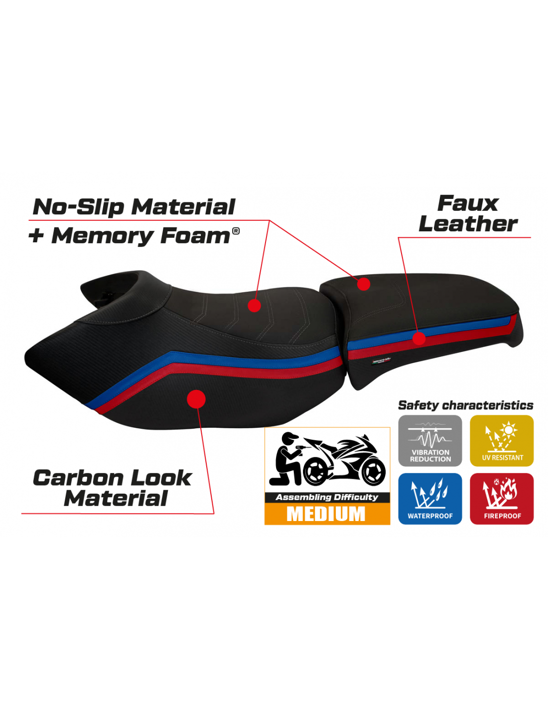 Rivestimento sella compatibile BMW R 1200 GS Adventure 2006 - 2012 – Modello Ionia 1 comfort system