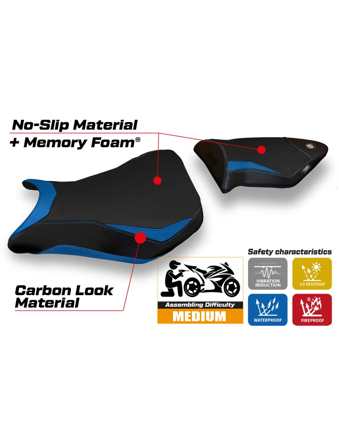 Rivestimento sella compatibile BMW S 1000 RR 2012 - 2014 – Modello Dacca 2 comfort system